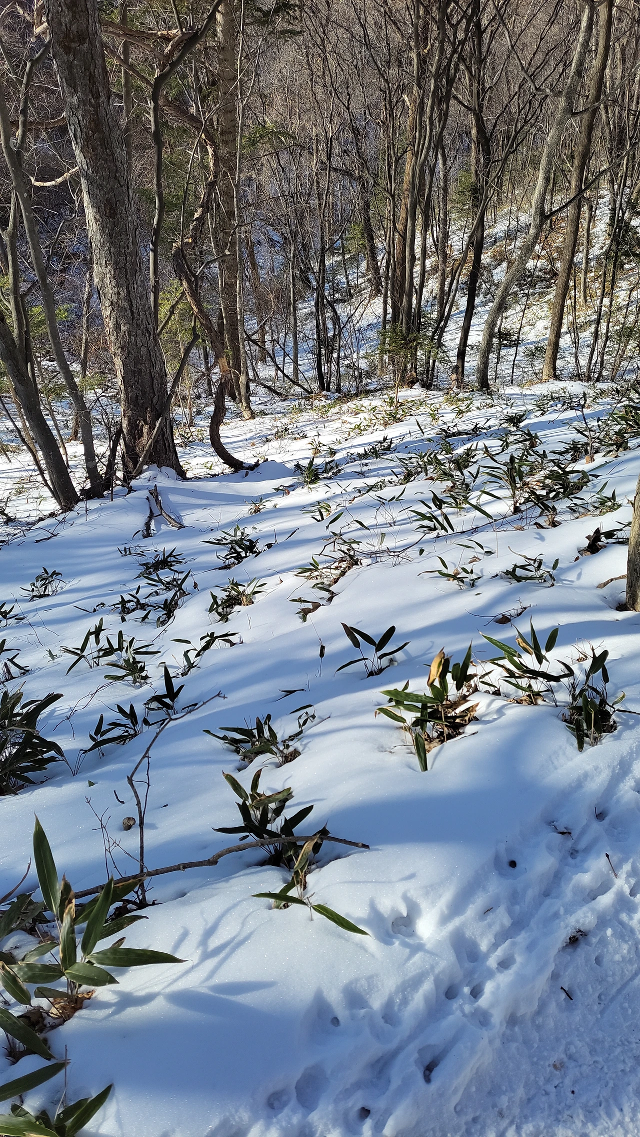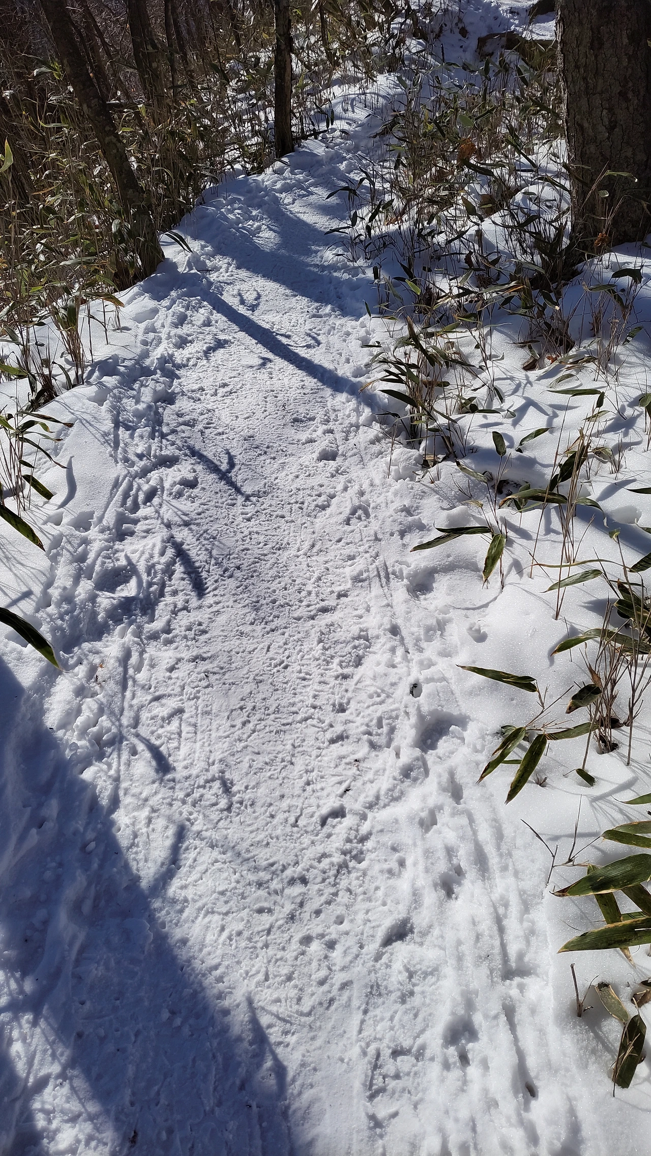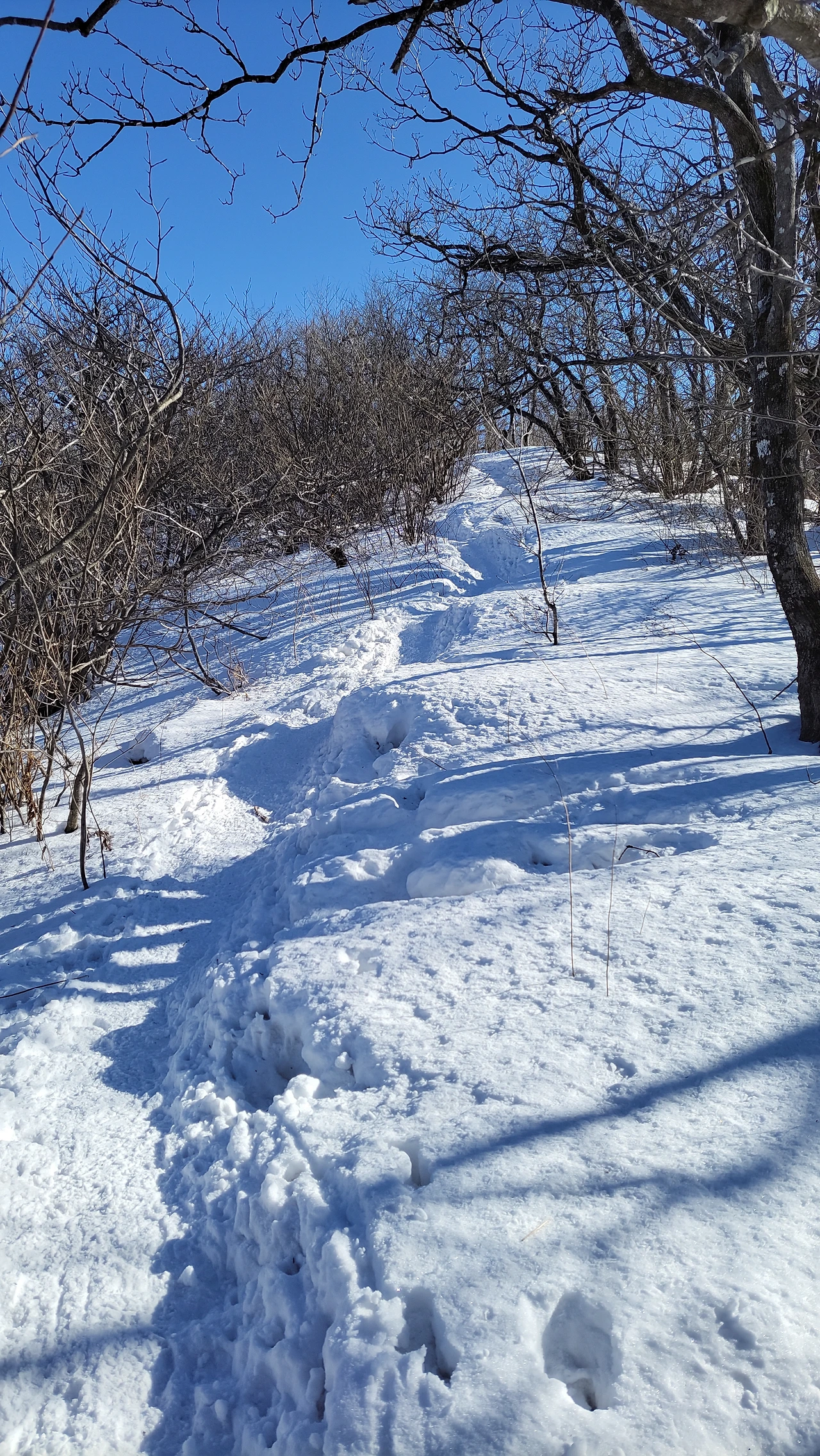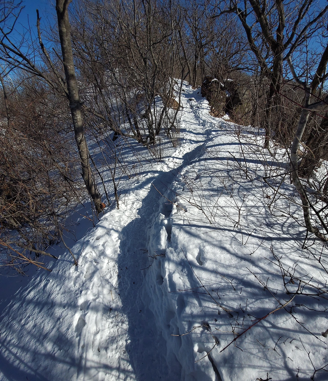 숲엔 눈 쌓여 아이젠 착용해야 했고
