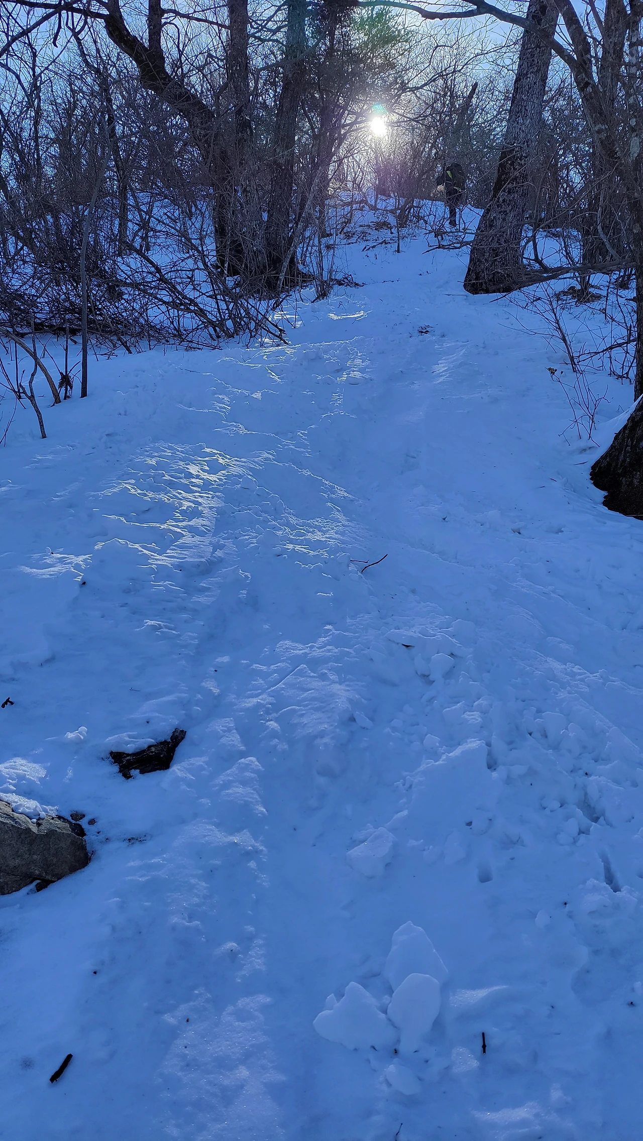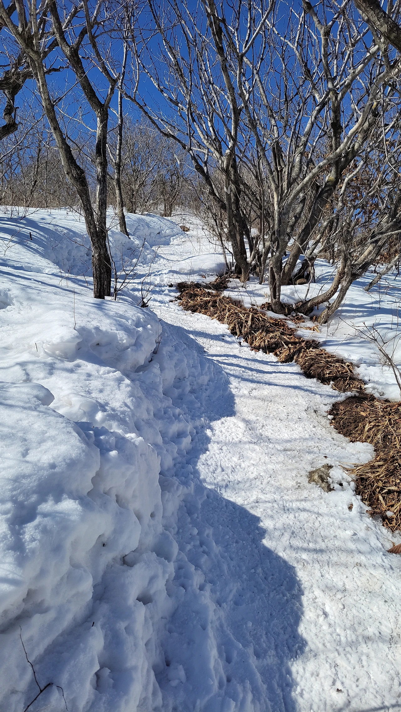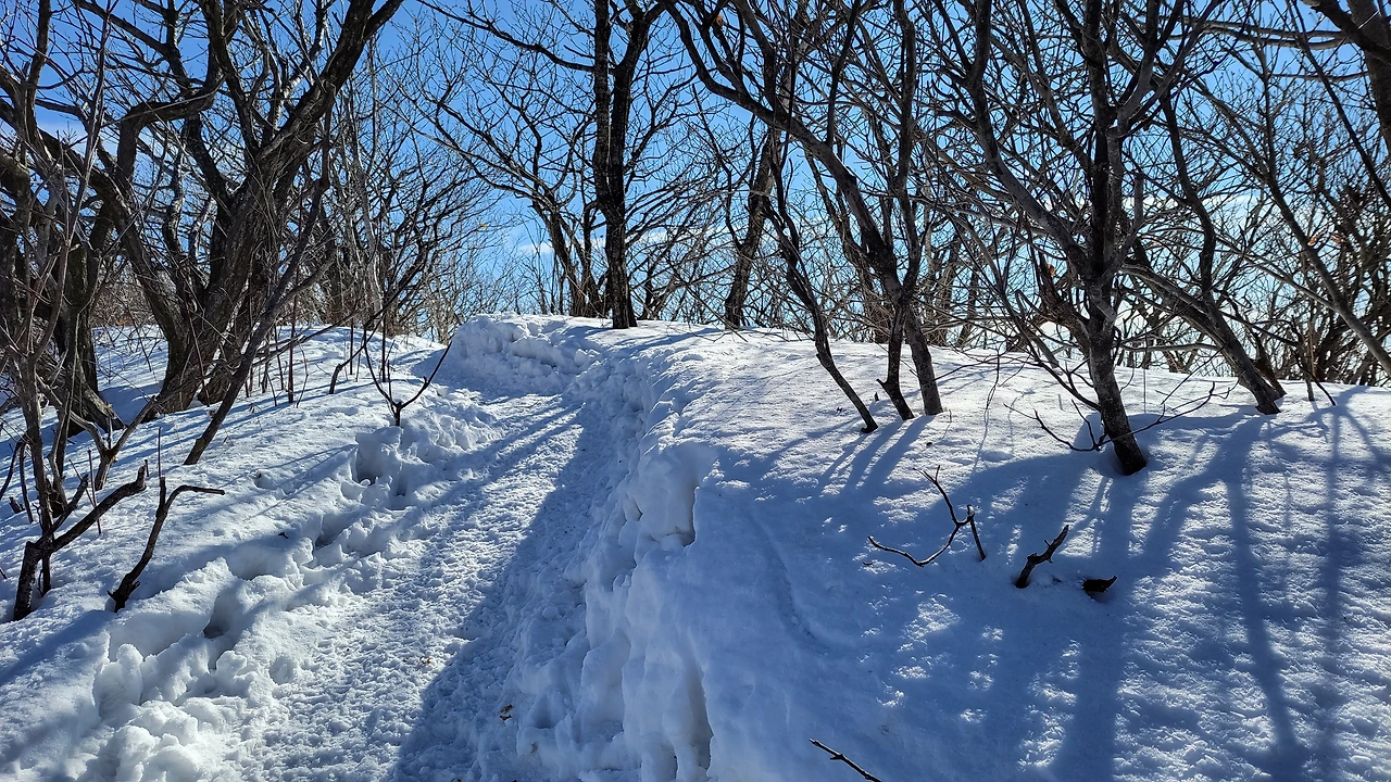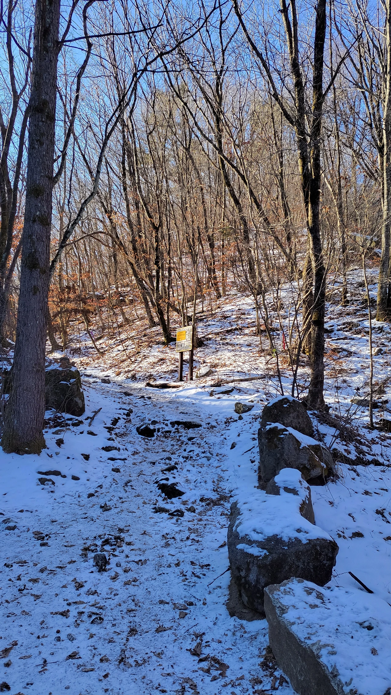 숲엔 눈 쌓여 아이젠 착용해야 했고