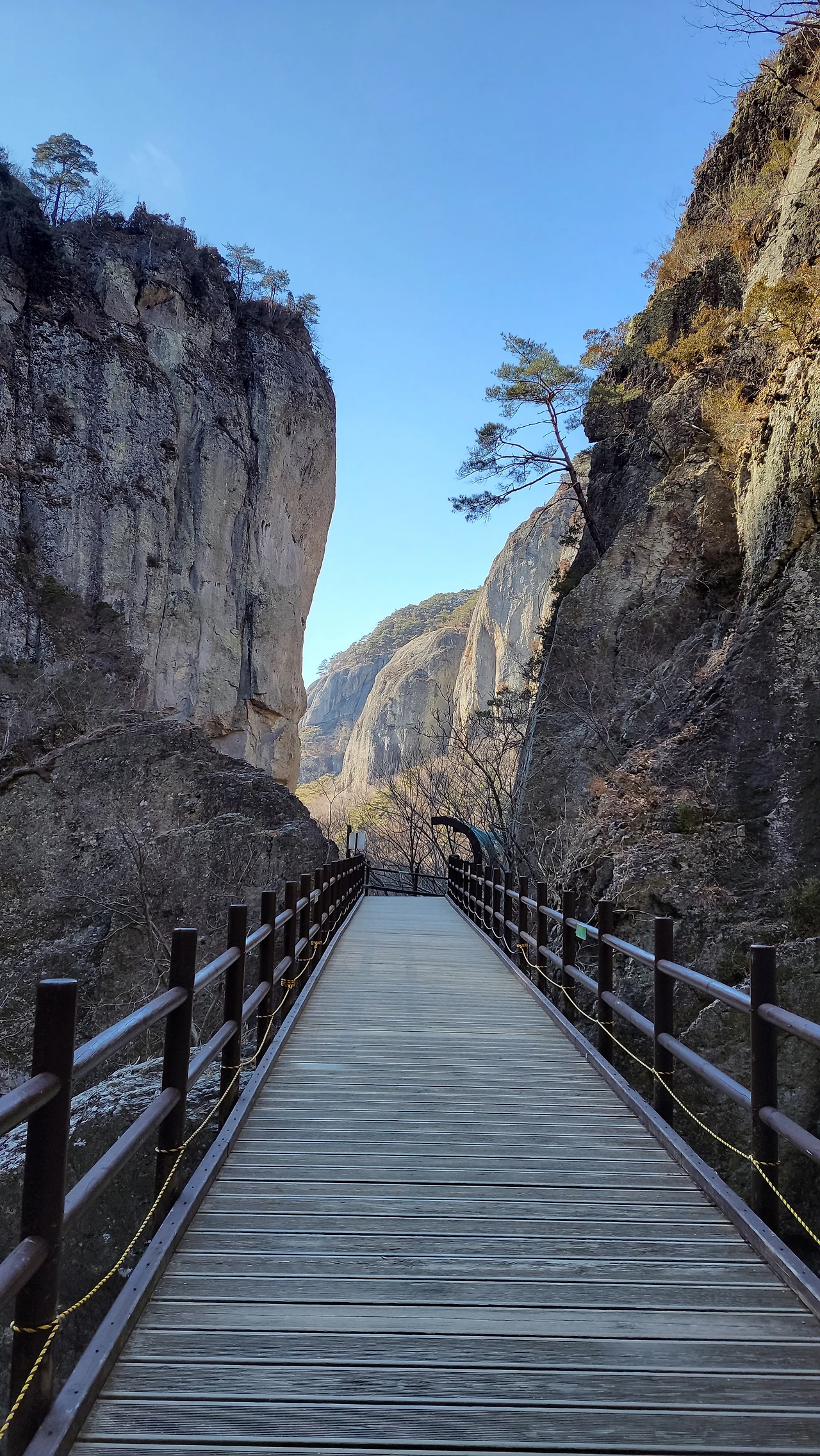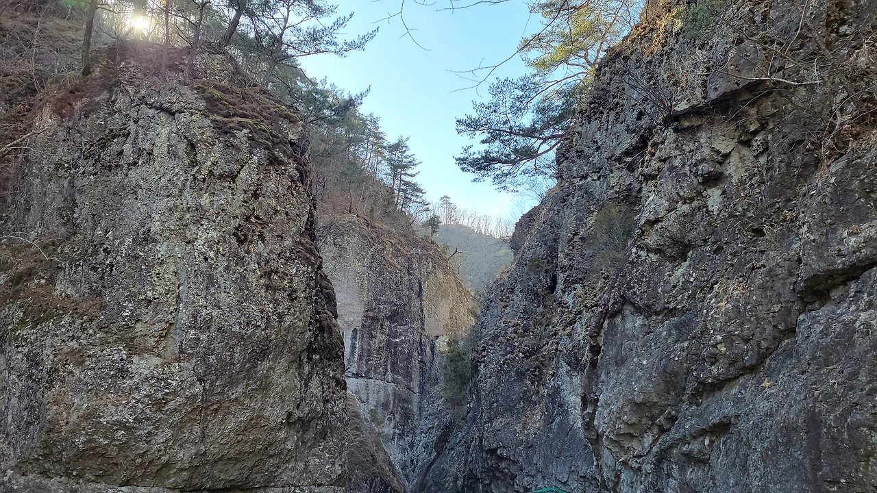 평지에서 갑자기 솟아올라 쿵하고 나타나는 아득히 높고 깊은 협곡,