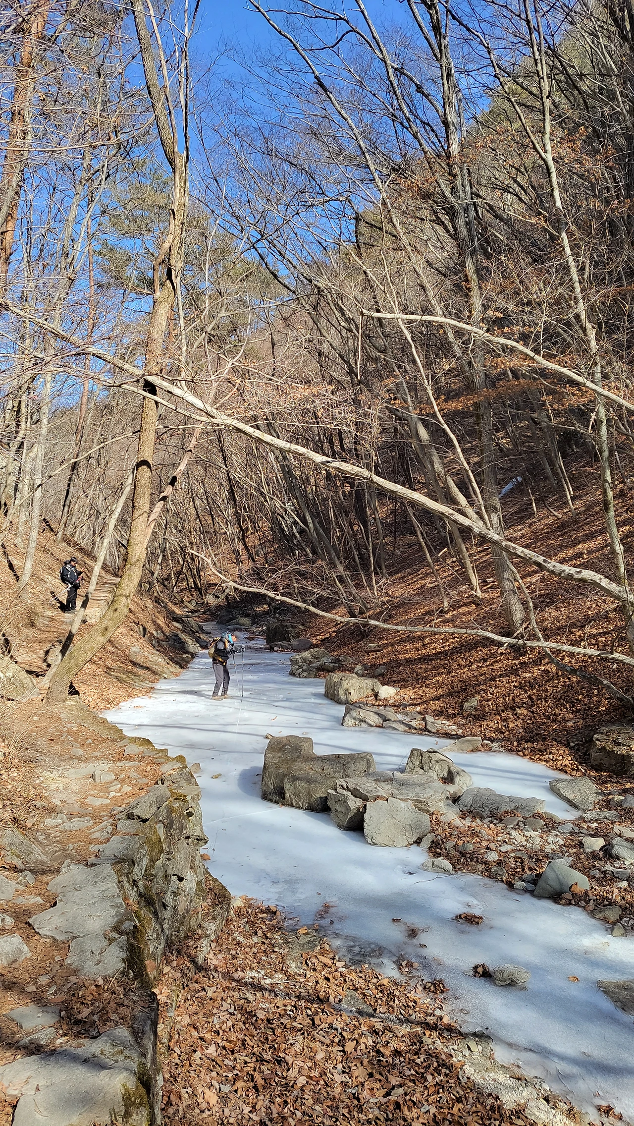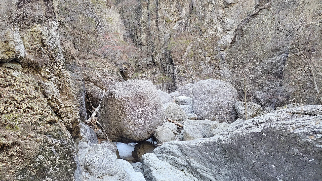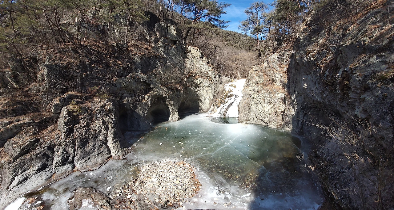 계곡은 얼었지만 구불구불 이어지는 물소리는 경쾌했지요.