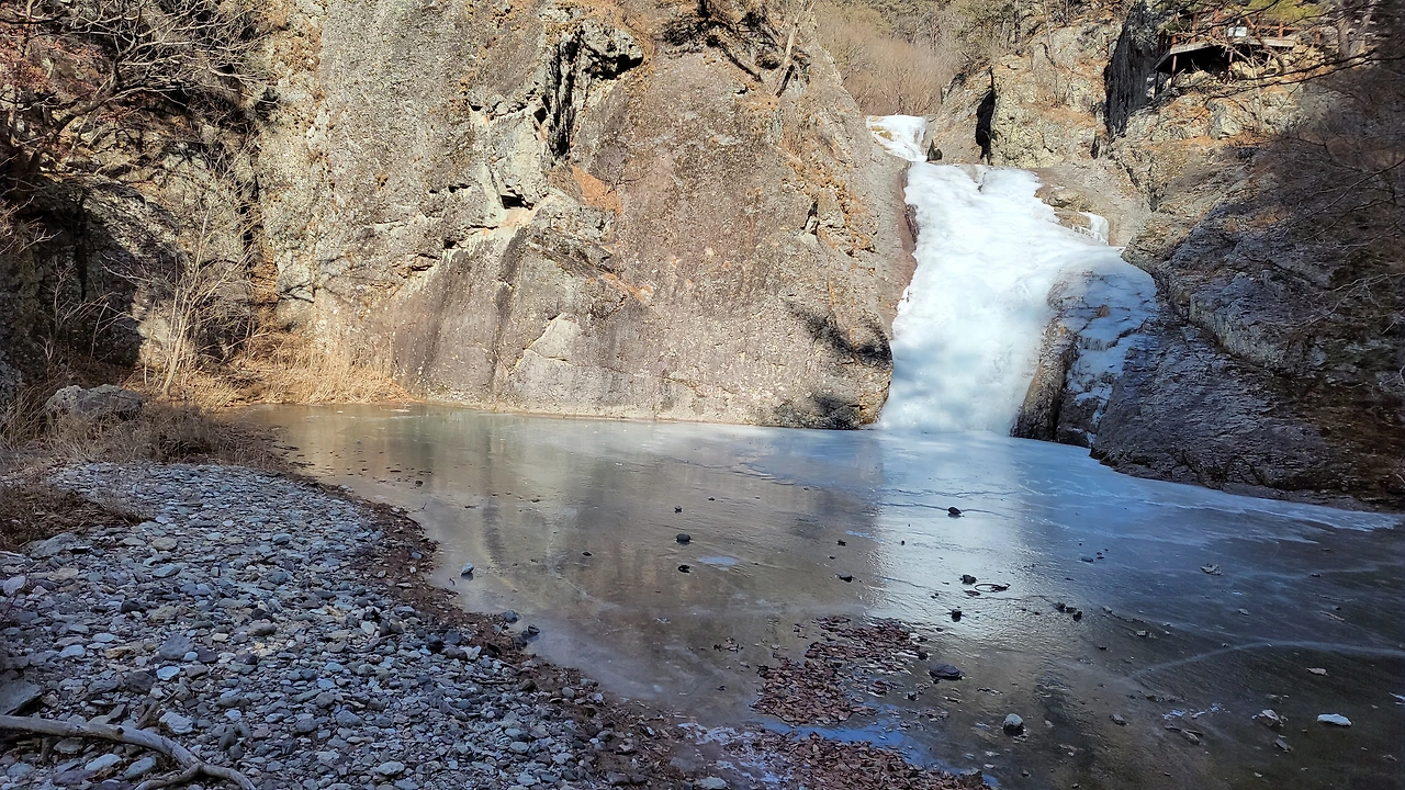 쌍용추 폭포라고도 하는 이곳은 온통 얼어붙은 채 시간을 나르고 있었습니다.