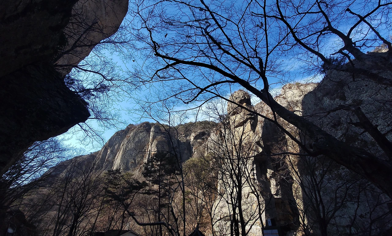바로 앞에는 연화봉, 병풍바위와 급수대 등 기암괴석의 바위 군락이 손에 잡힐 듯 펼쳐져 있습니다.