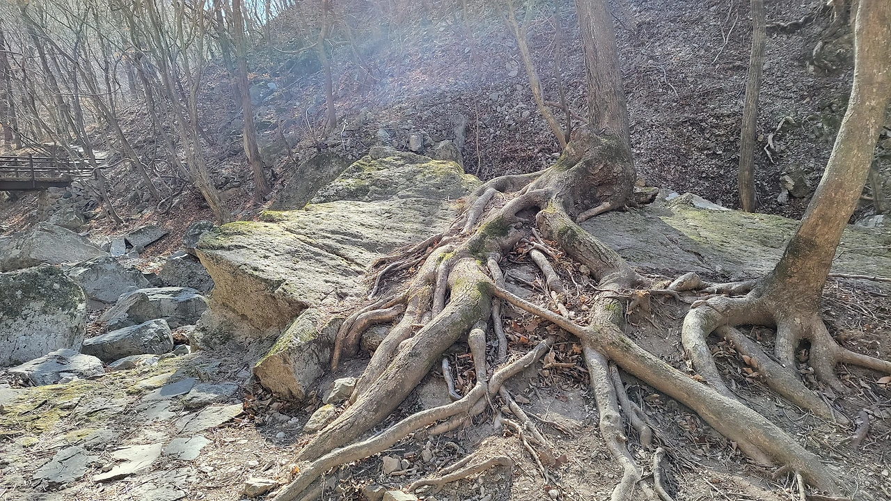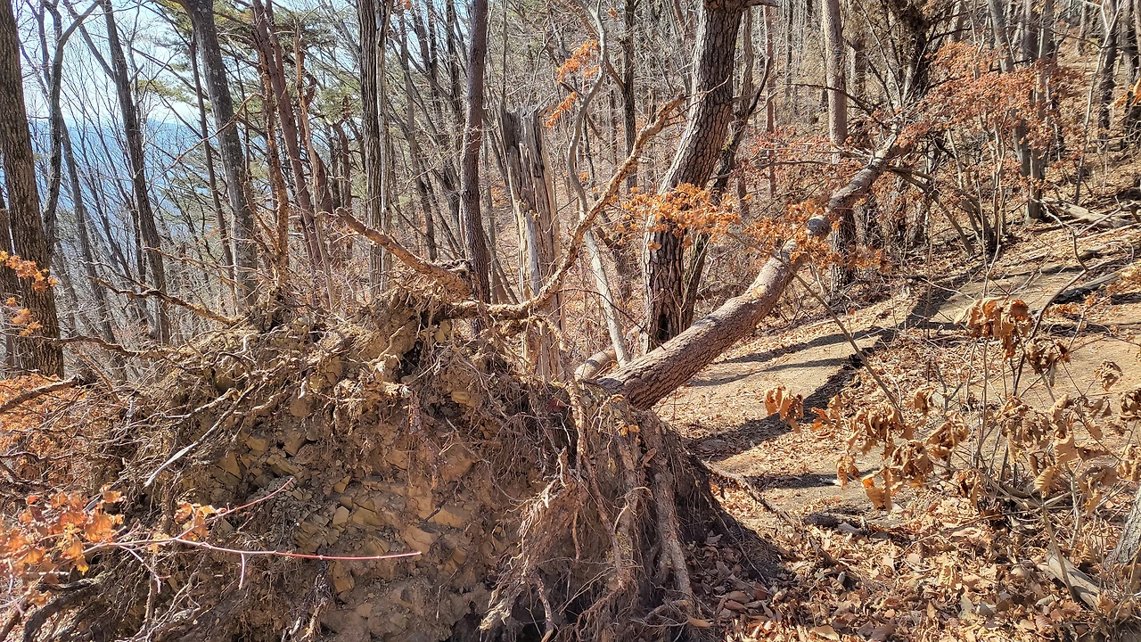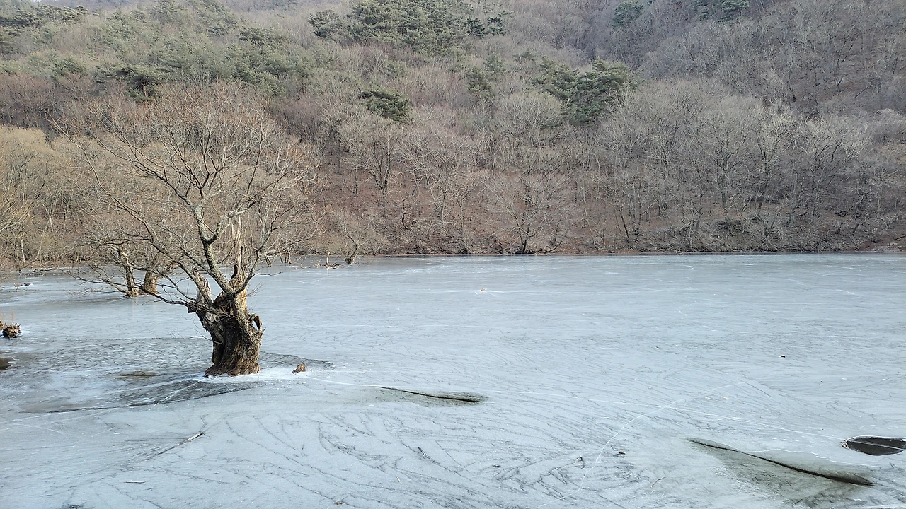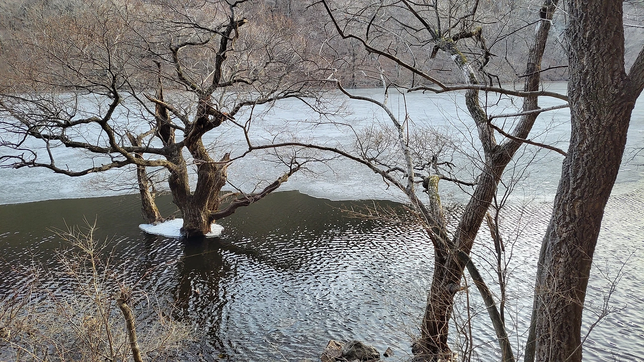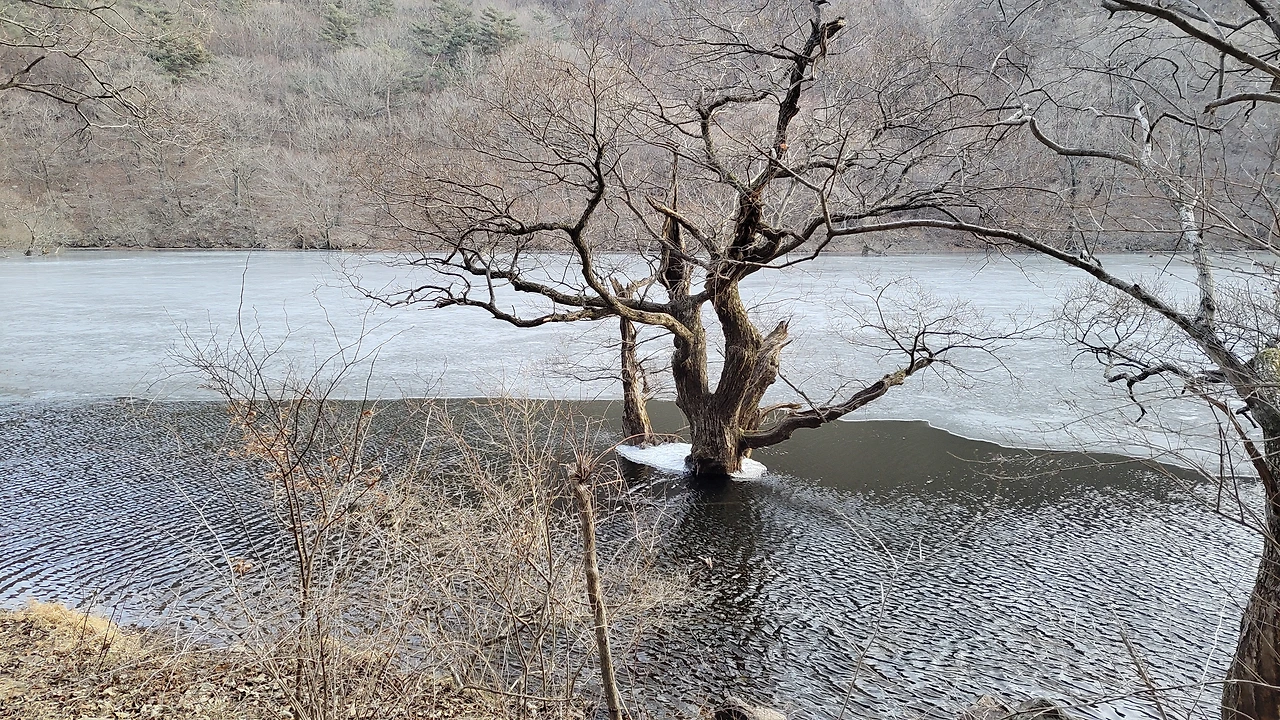 얼어붙은 물과 뿌리 드러낸 나무들 스산한 겨울 풍경 한참 이어졌지요.