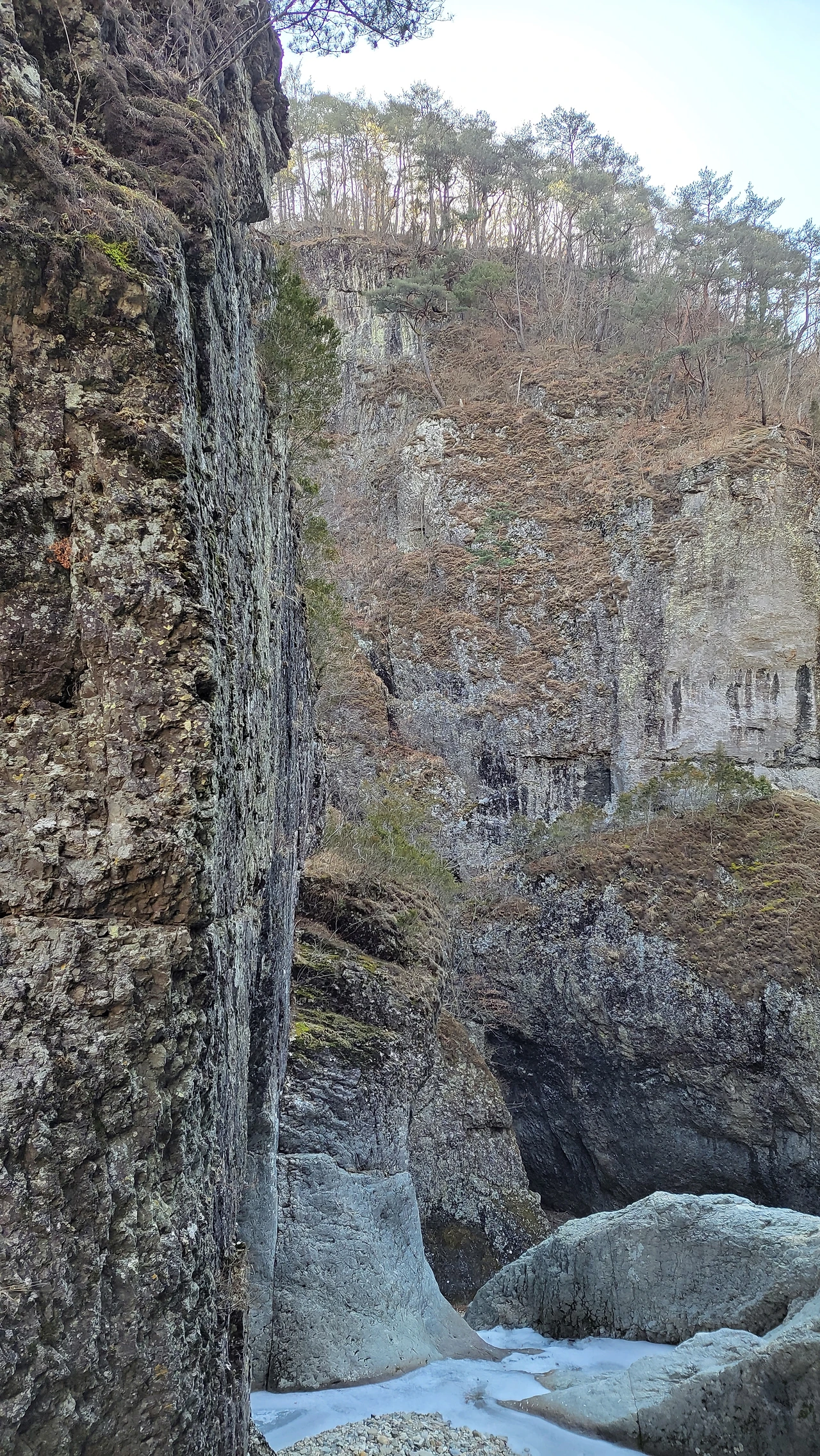 협곡 끝나며 아득이 솟아있는 시루봉, 학소대, 망월대, 급수대 주상절리 감탄 자아냅니다.