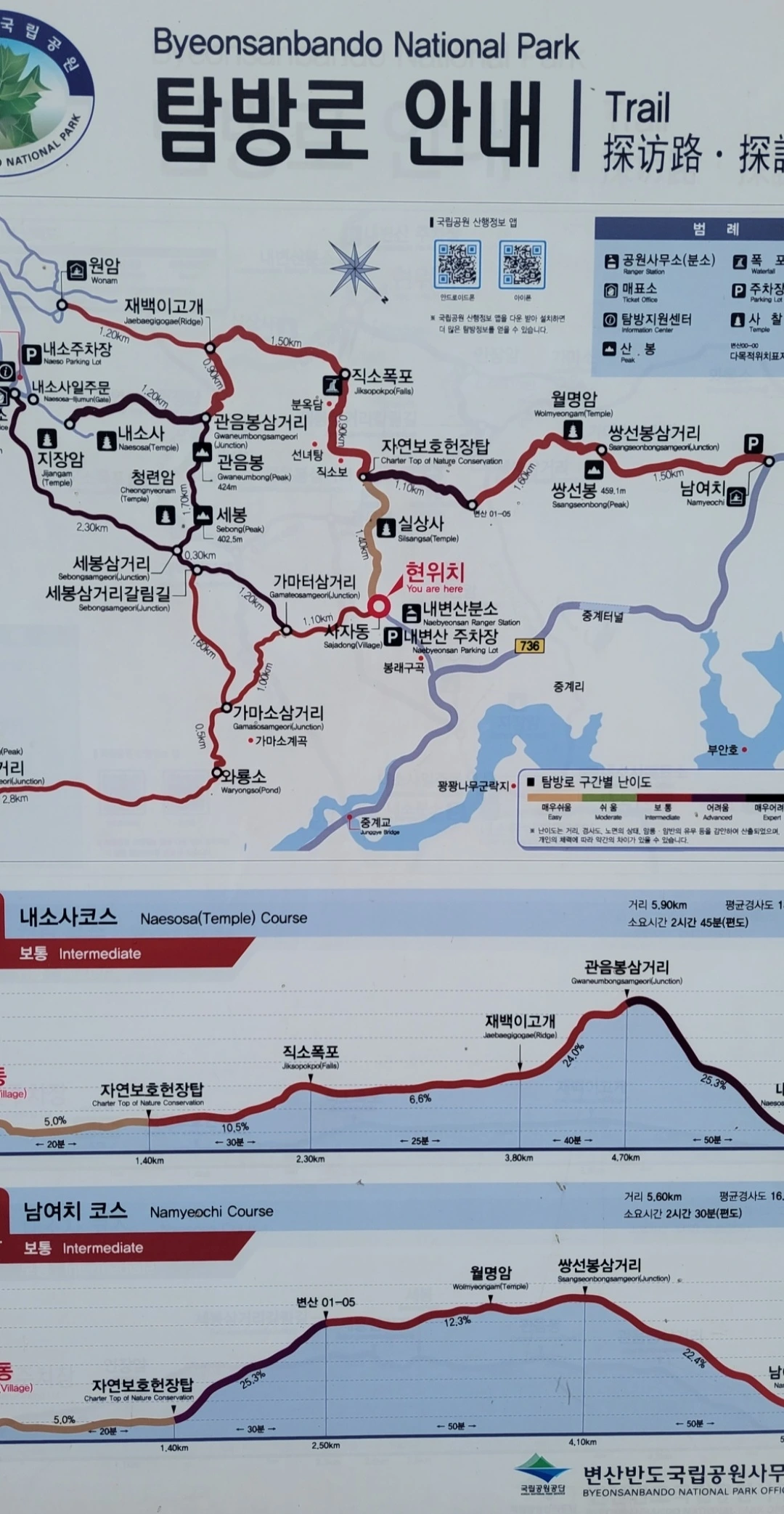 *탐방쎈터~직소폭포~재백이고개~관음봉삼거리~관음봉정상~내소사 총 7.9km 3시간 20분 걸었습니다.