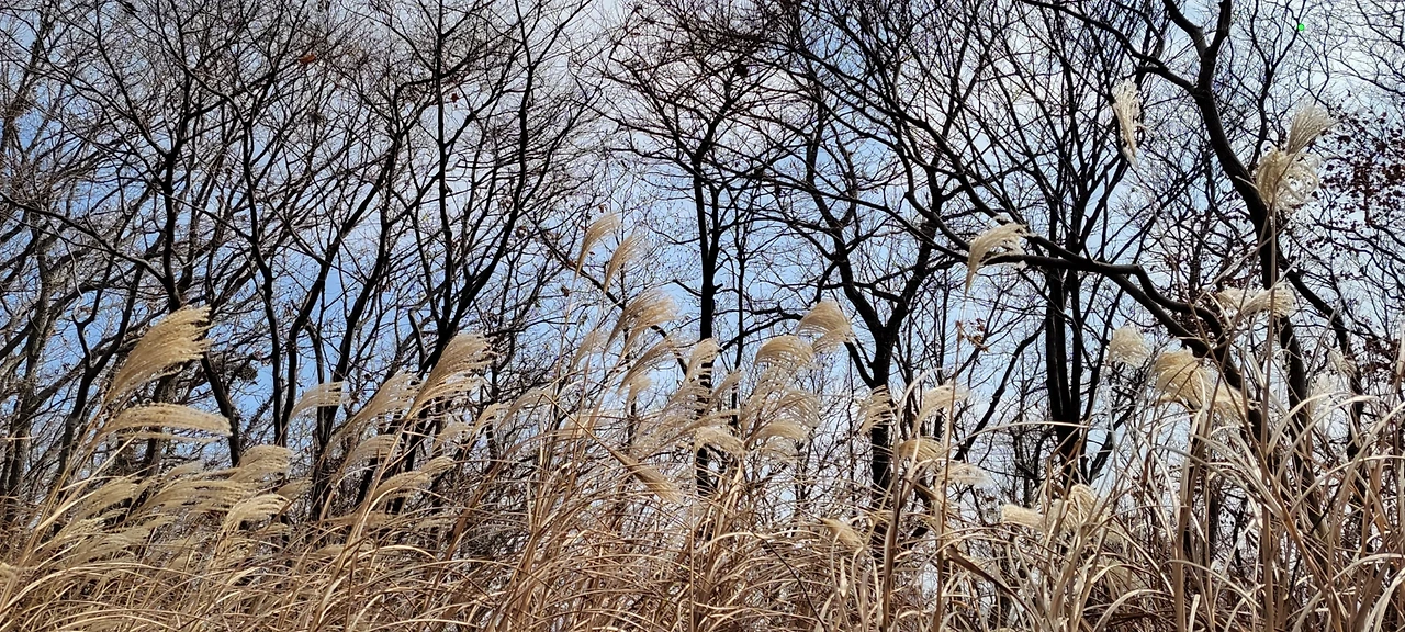 마른 가지 사이 만발한 억새