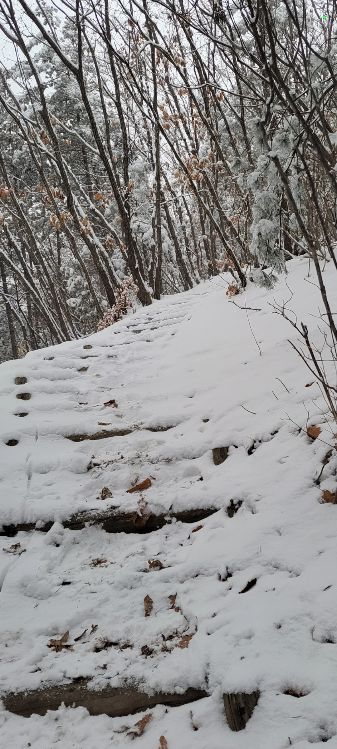 미끄러운 눈길 헤치고 오릅니다.