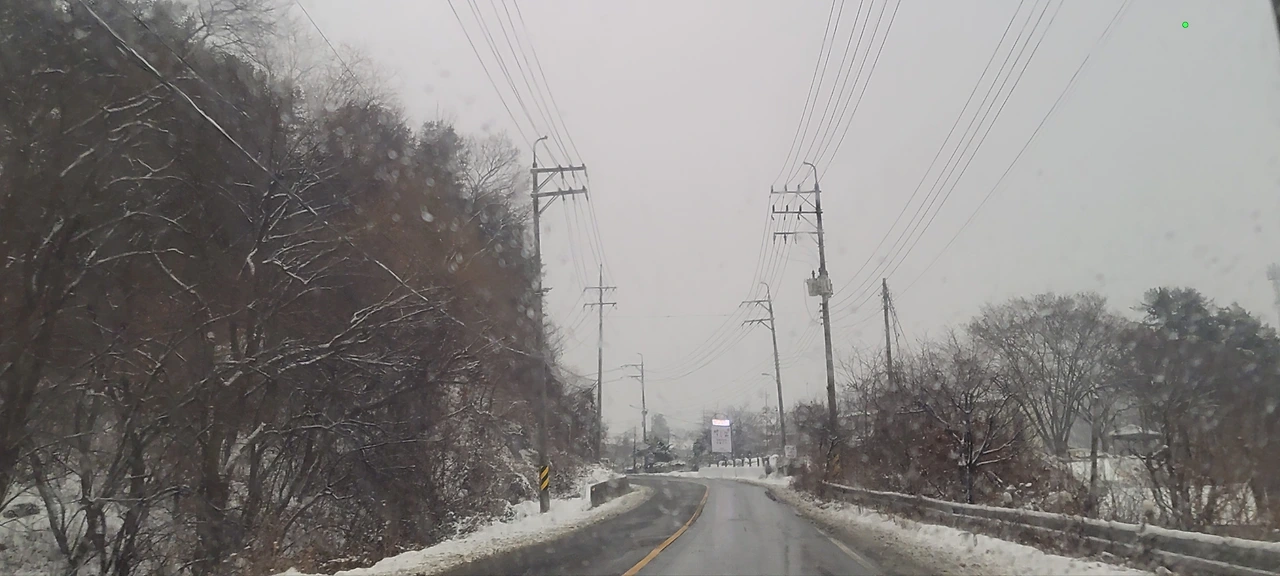 눈 쌓인 도로 벗어나