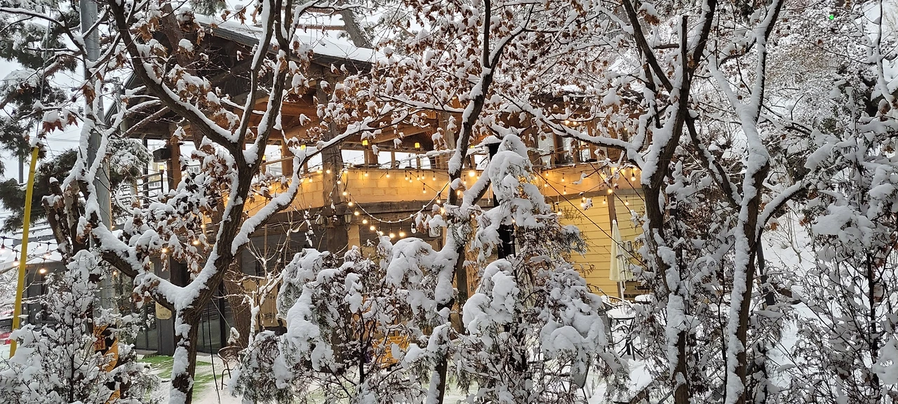 이쁘게 눈 쌓인 나무들 모습