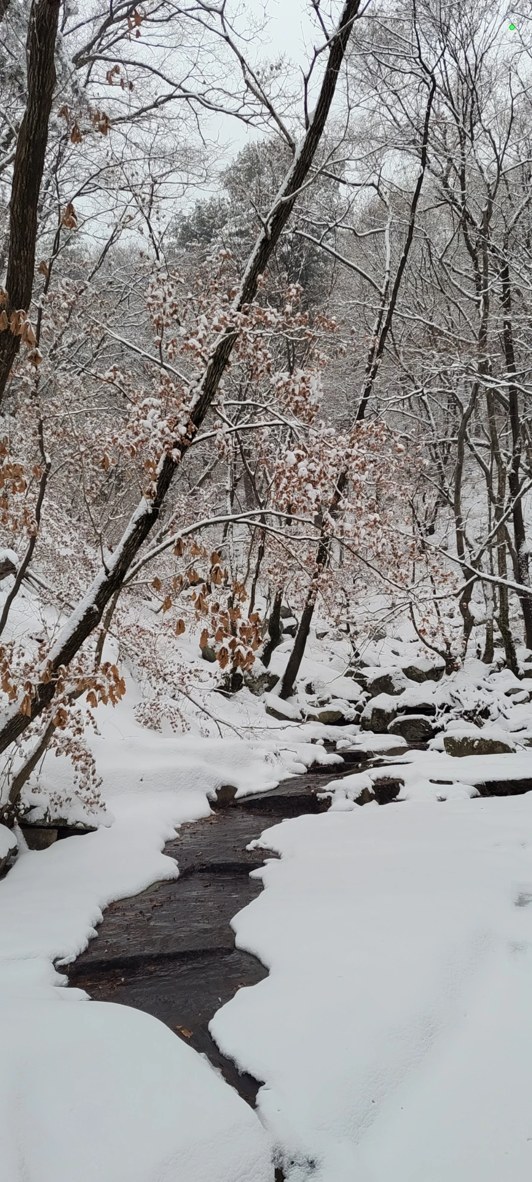 눈밭사이 흐르는 검은 계곡