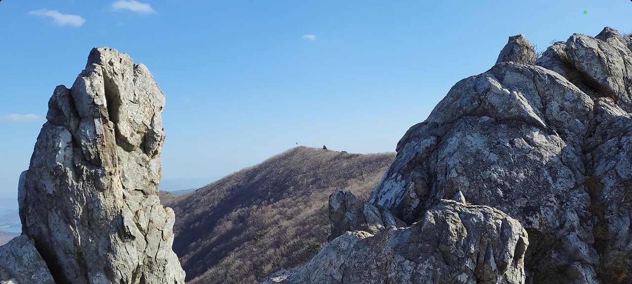 뾰족 삐죽 솟은 모든 봉들의 오르내리는 길이 장난 아니며 특히 종처럼 우뚝 선 여섯 번째 두류봉은