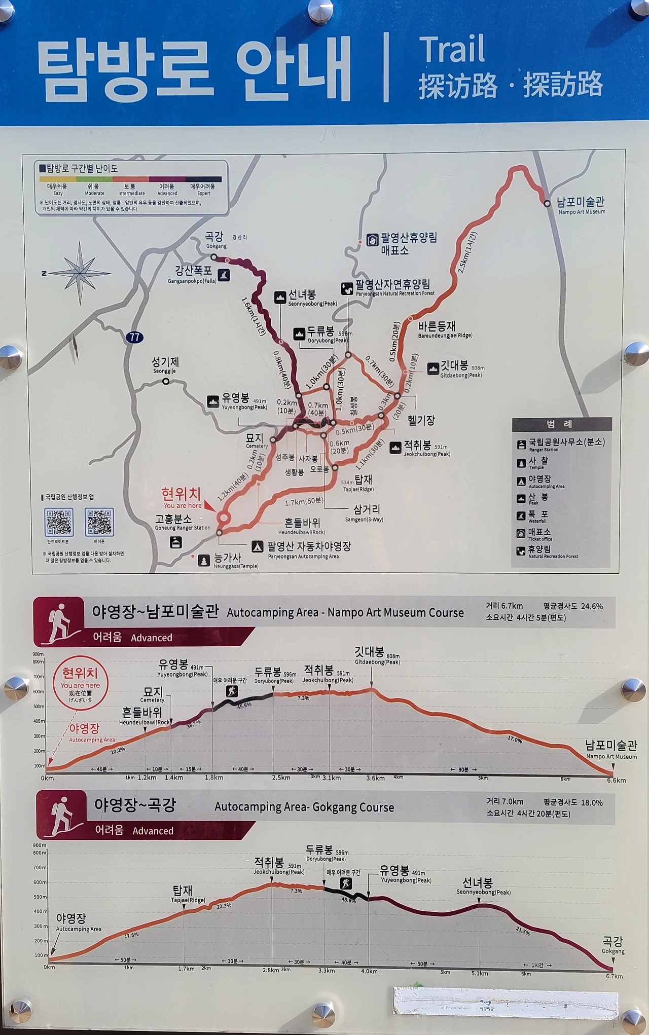 *주차장~능가사~자연휴양림~1~8봉~정상깃대봉~탑재~능가사~환형원점회귀 총 7.4km 4시간 반 놀며 쉬며 걸었습니다.