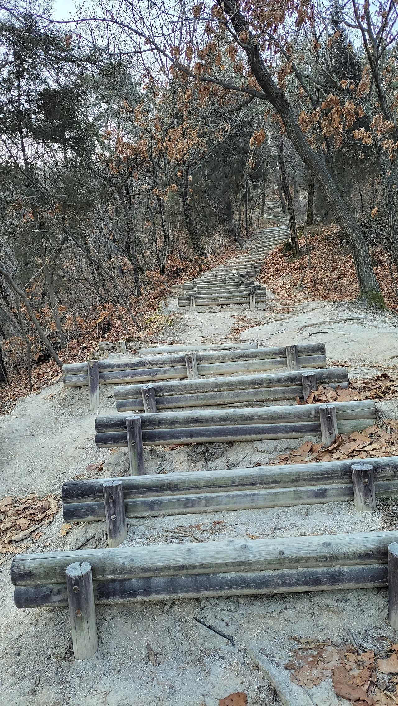 예전엔 가파른 암릉길이었지만 지금은 계단으로 잘 정비된 등산로 오릅니다.
