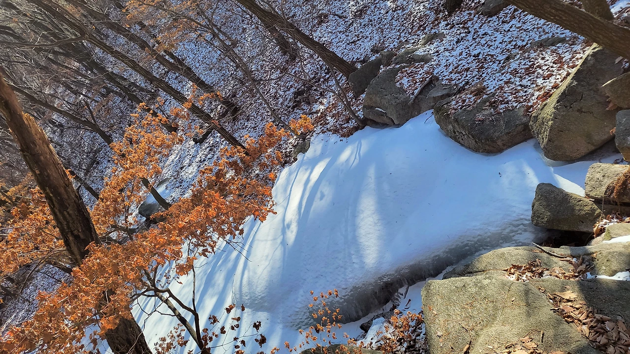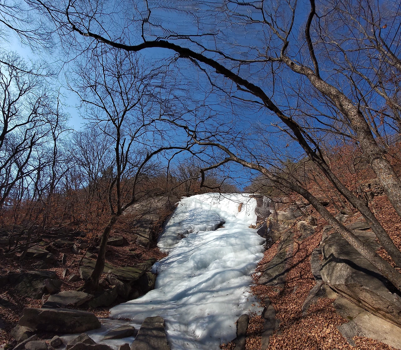 음지인지라 눈이 가득했고 얼음도 많았지요.