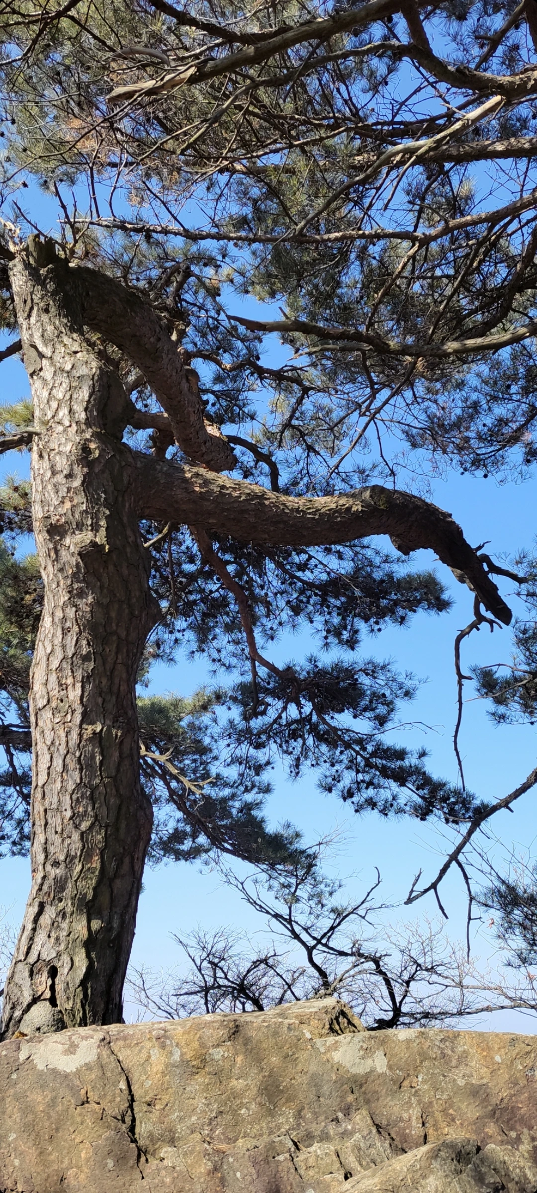 바위 사이 뿌리내린 수수 백 년 멋진 소나무들입니다.
