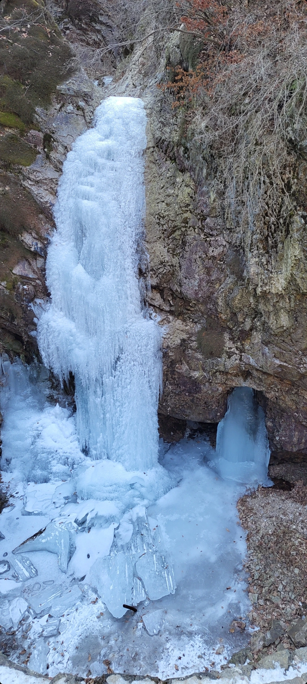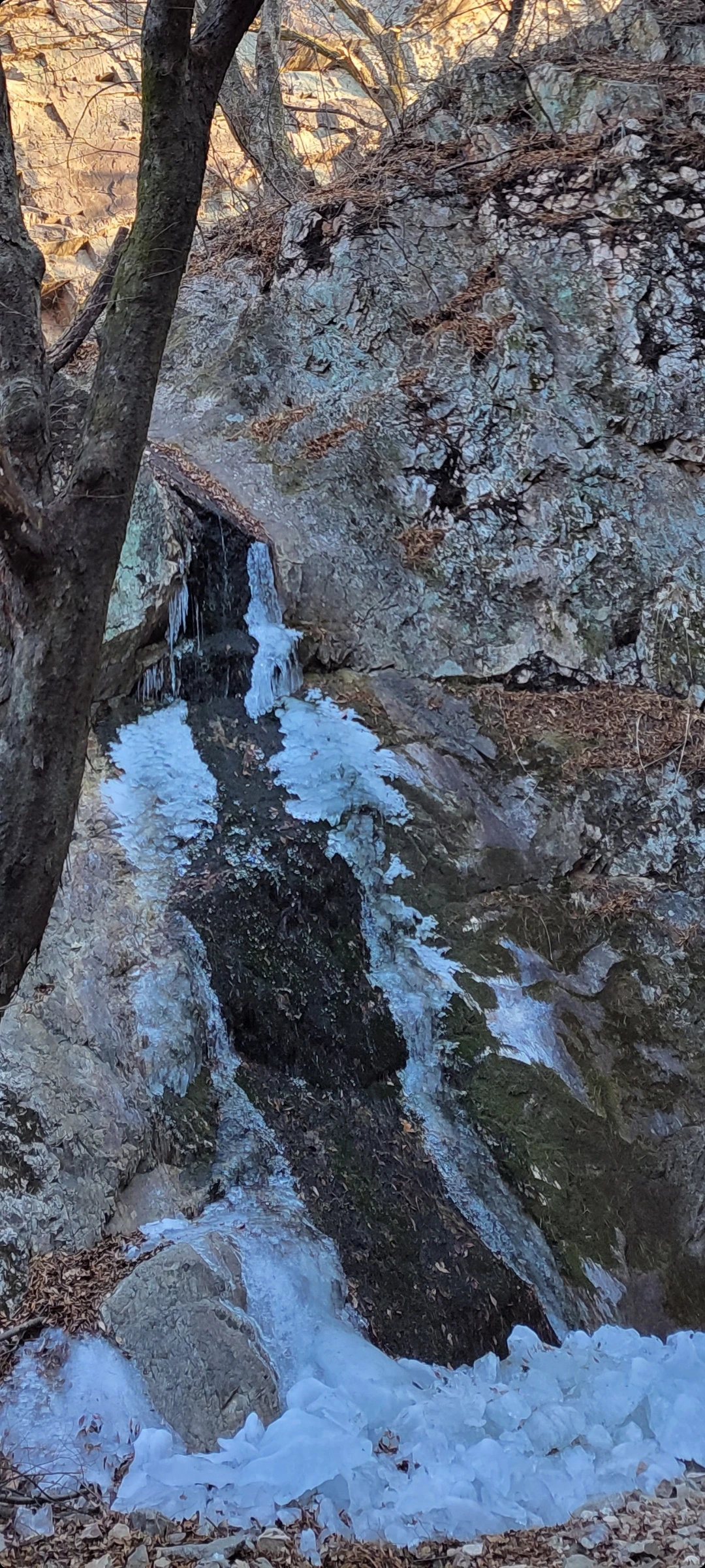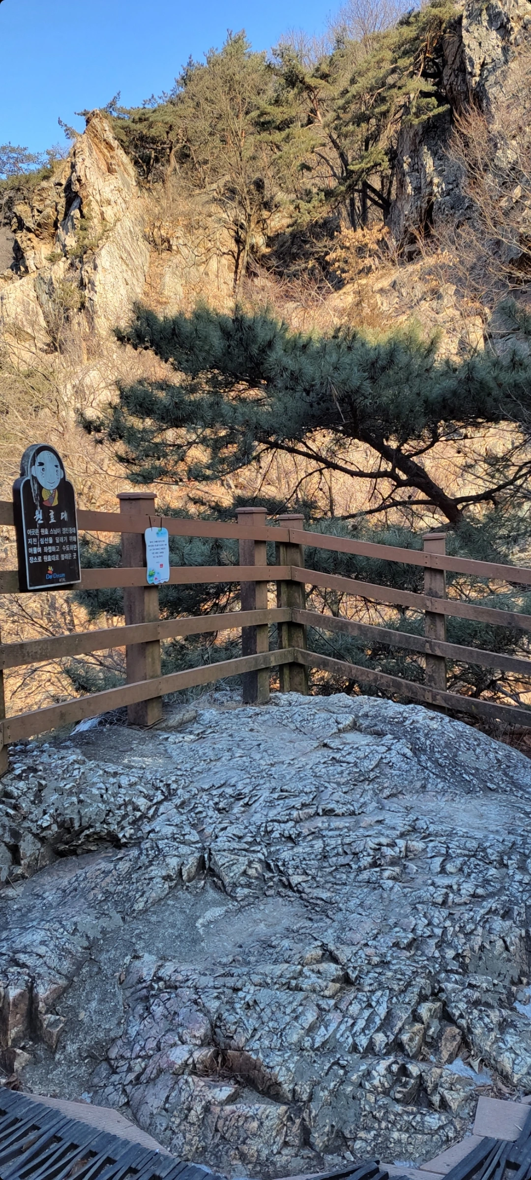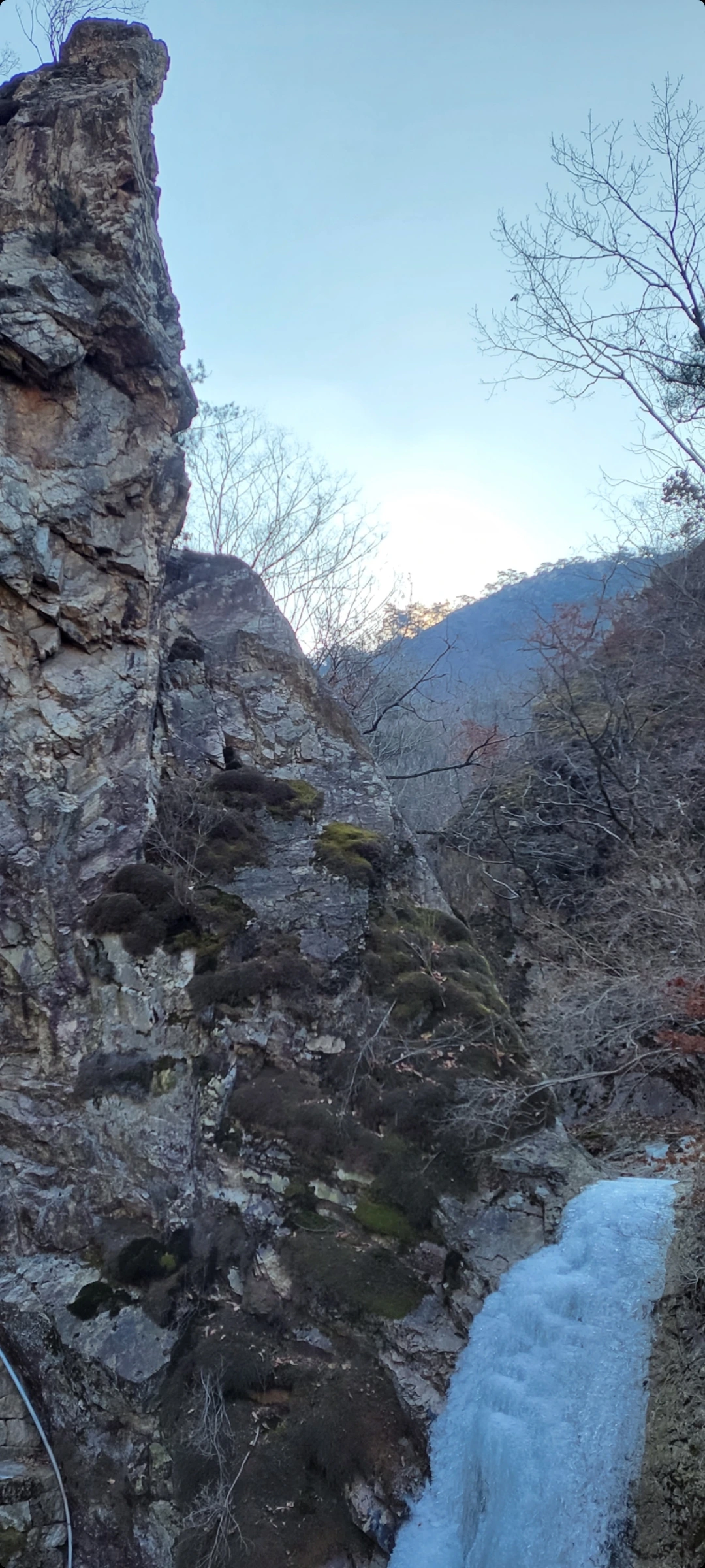 독립암 솟아있고 그 아래 청량폭포 얼어있습니다.