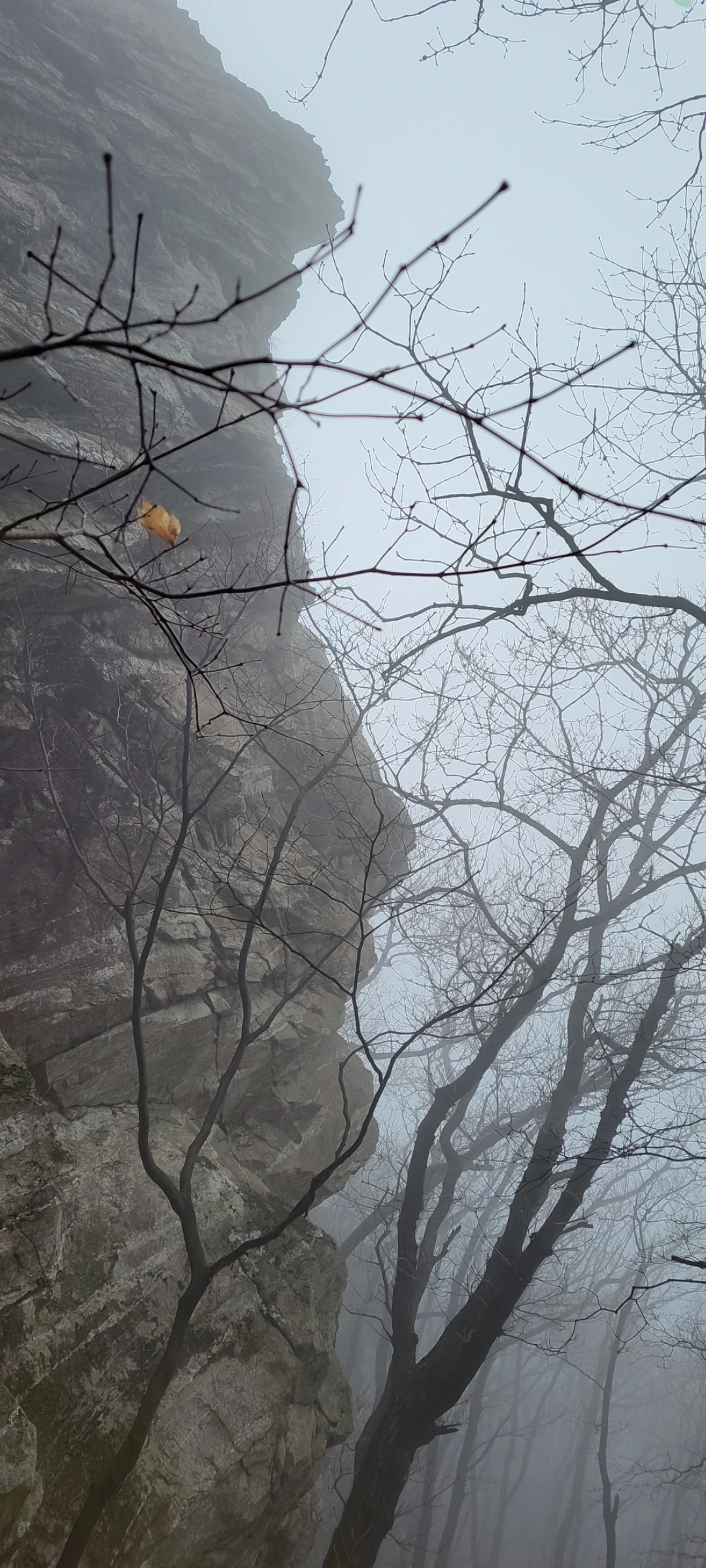 한참을 올라 능선에 서니 안개는 산 밑으로 가라앉았고 소나무들이 그림 같은 풍경을 만들어냈지만, 가랑비까지 바람에 흩날리며 몸을 적시기 시작했습니다.