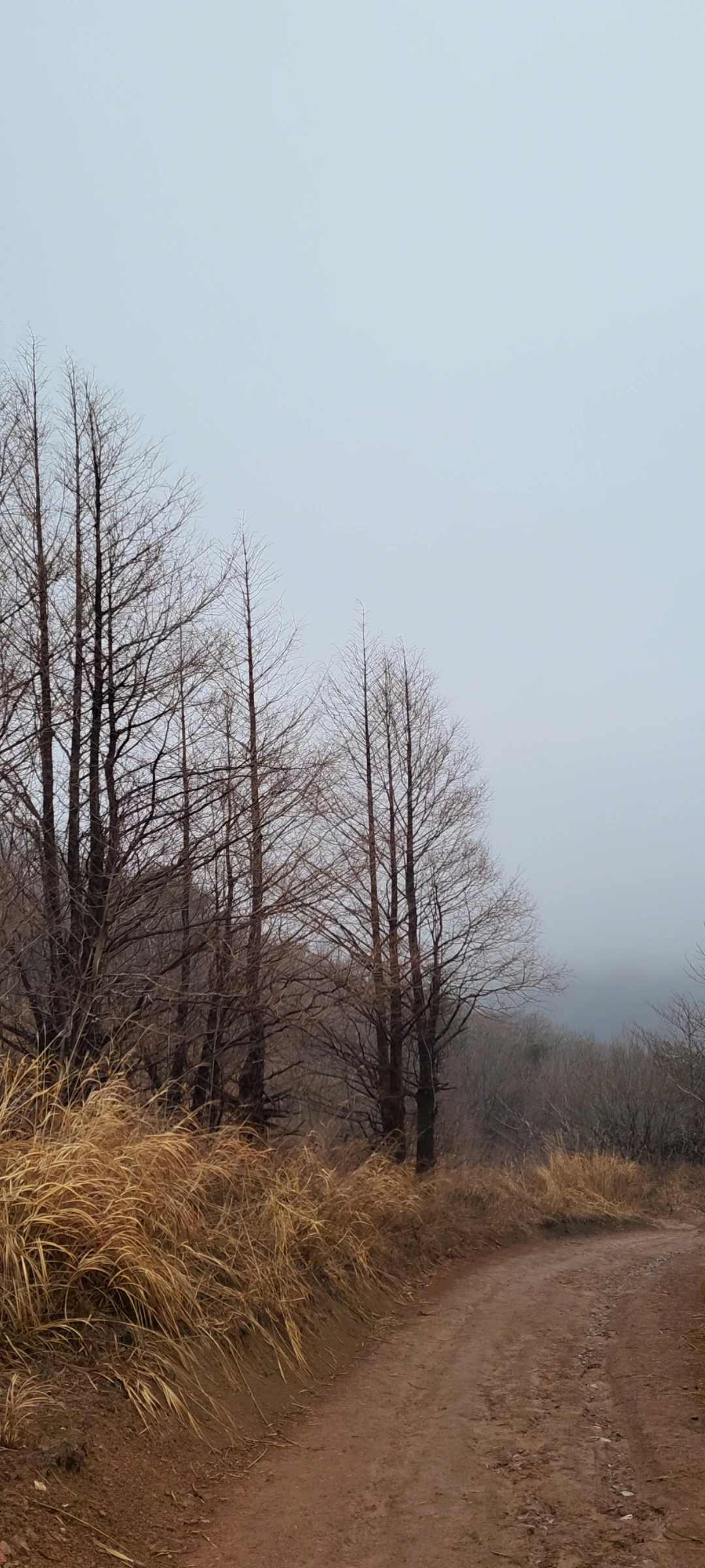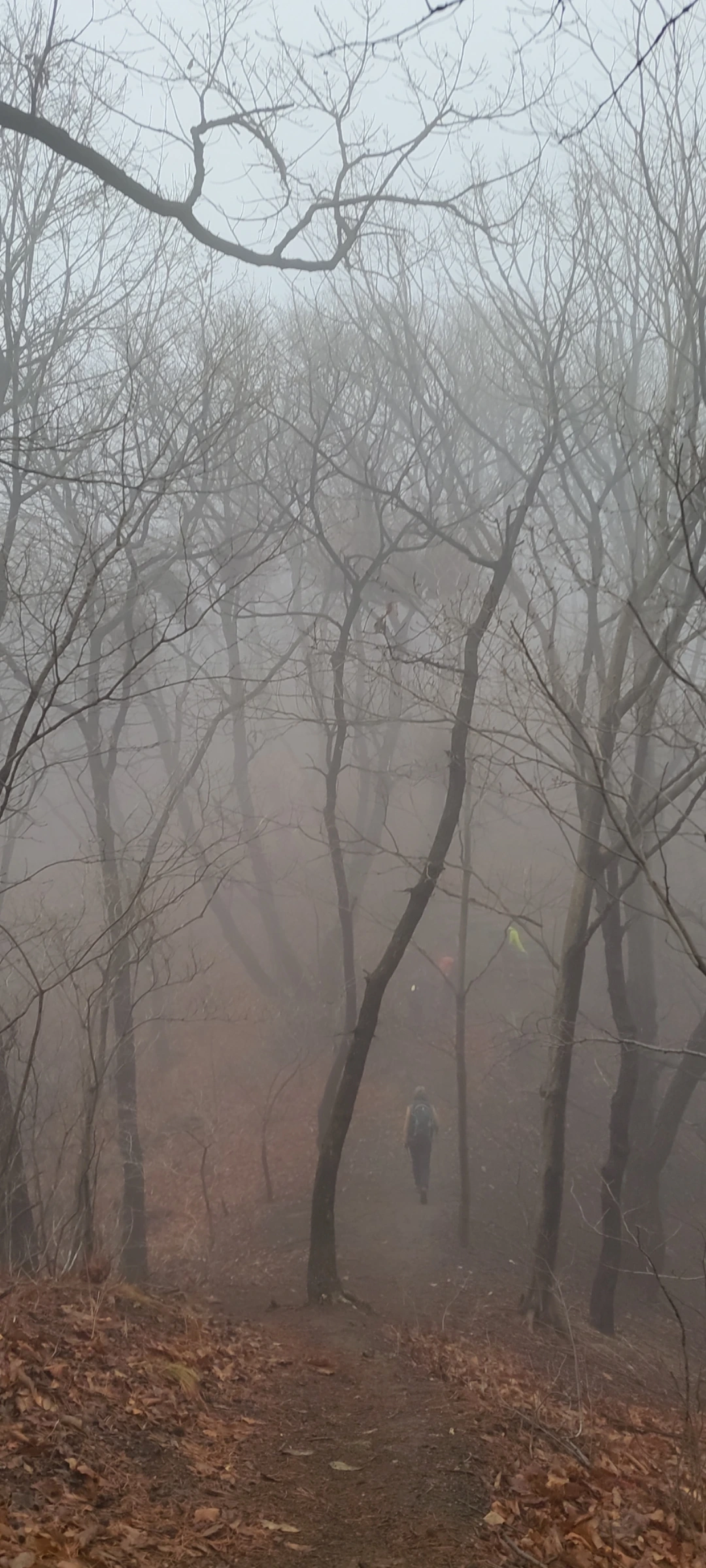 풍경은 시계 제로에 가깝고 안개와 운무에 가린 이름 모를 나무들이 오솔길 옆에 몸을 반쯤 숨기고 있습니다. 사진 몇 컷 찍다 보니 어느새 일행 십여 명은 저만치 앞서가고 보이지도 않더군요.