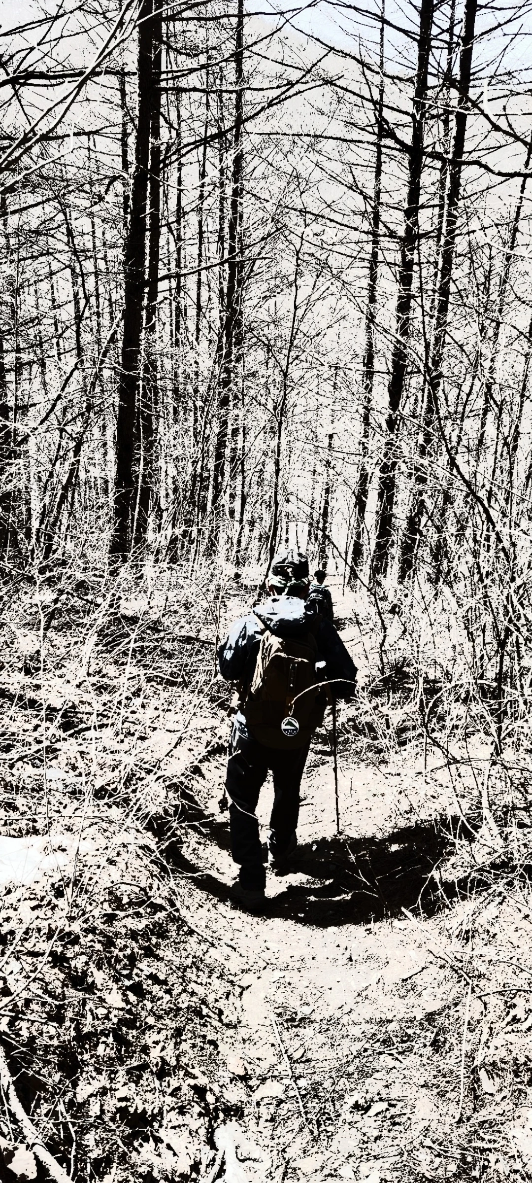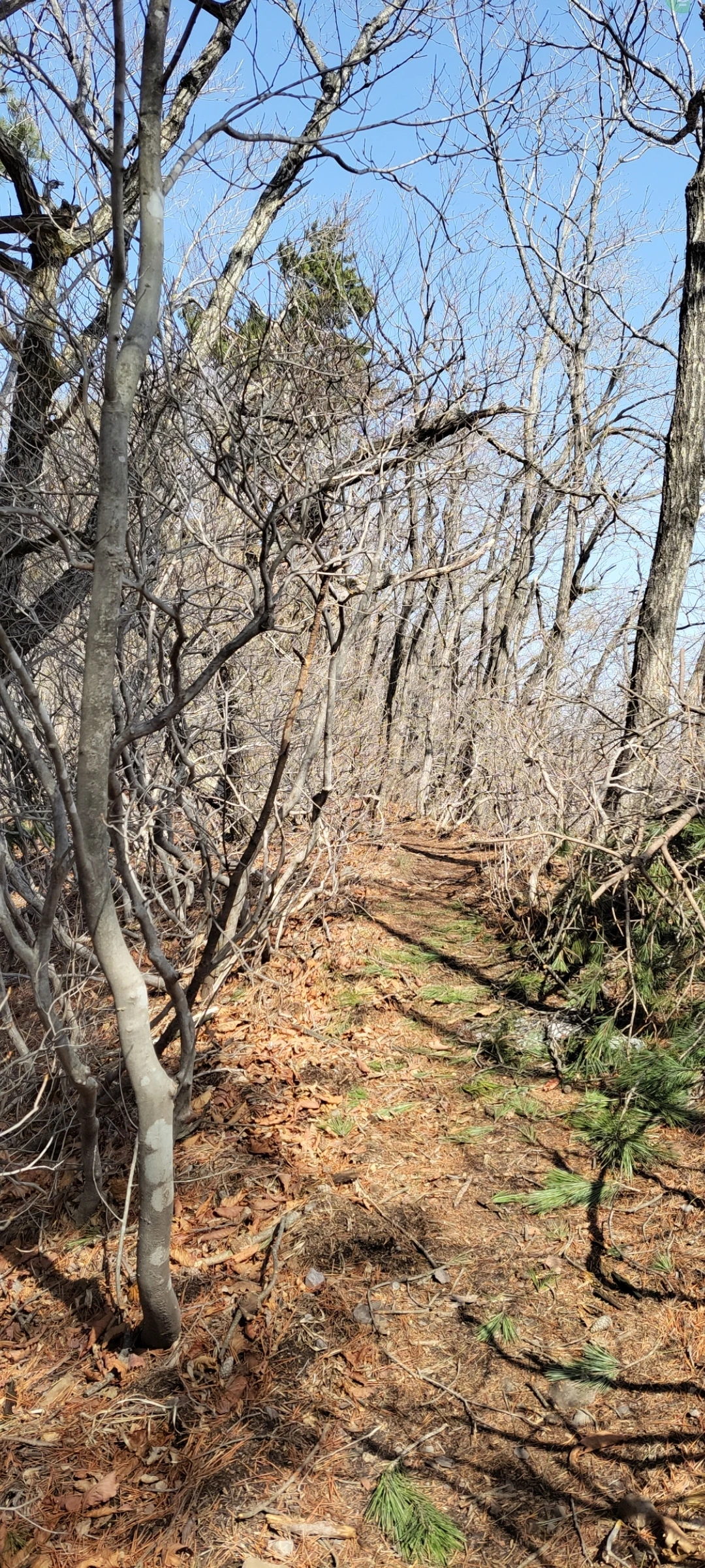 아랫녁과 북사면 음지는 눈이 한창이지만, 위로 오를수록 따듯한 햇살 덕분에 오히려 뽀송뽀송한 낙엽 길이 이어졌습니다.