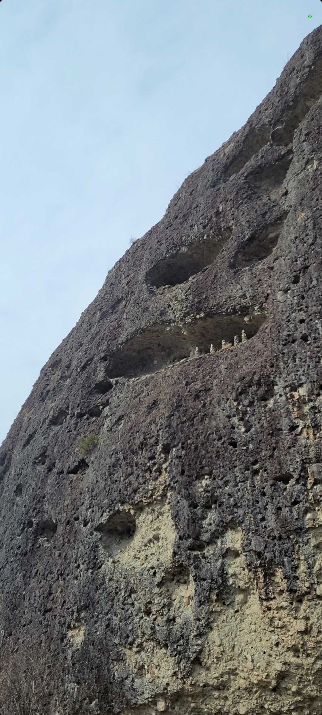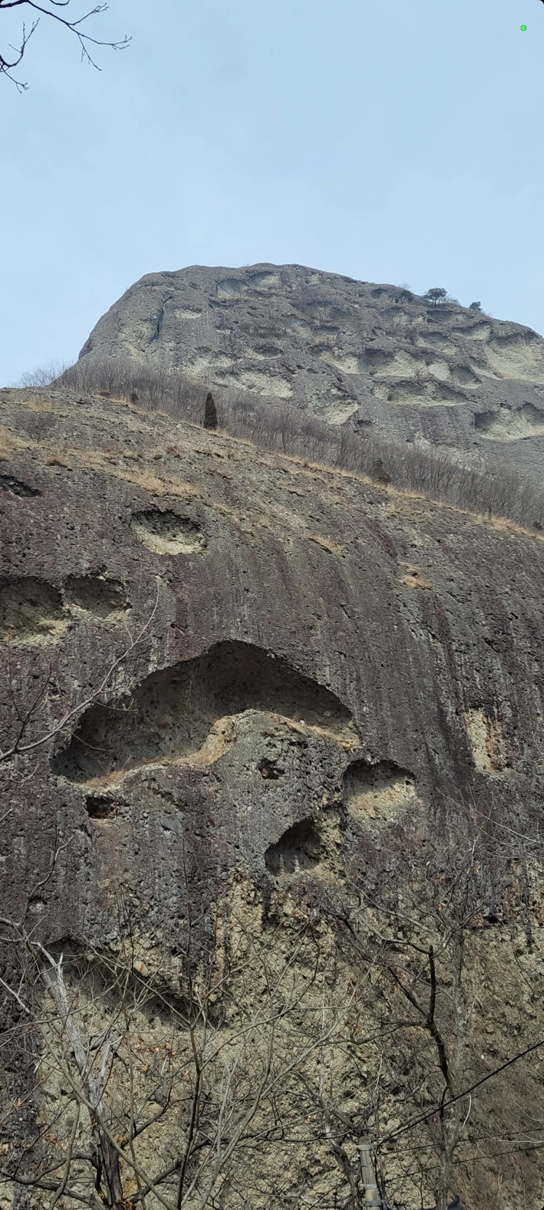봉우리 중턱 급경사면에 움푹 파인 크고 작은 굴들을 타포니 지형이라 하는데, 풍화작용이 표면이 아니라 내부가 팽창되면서 시작하여 밖에 있는 바위 표면을 밀어냄으로써 만들어져