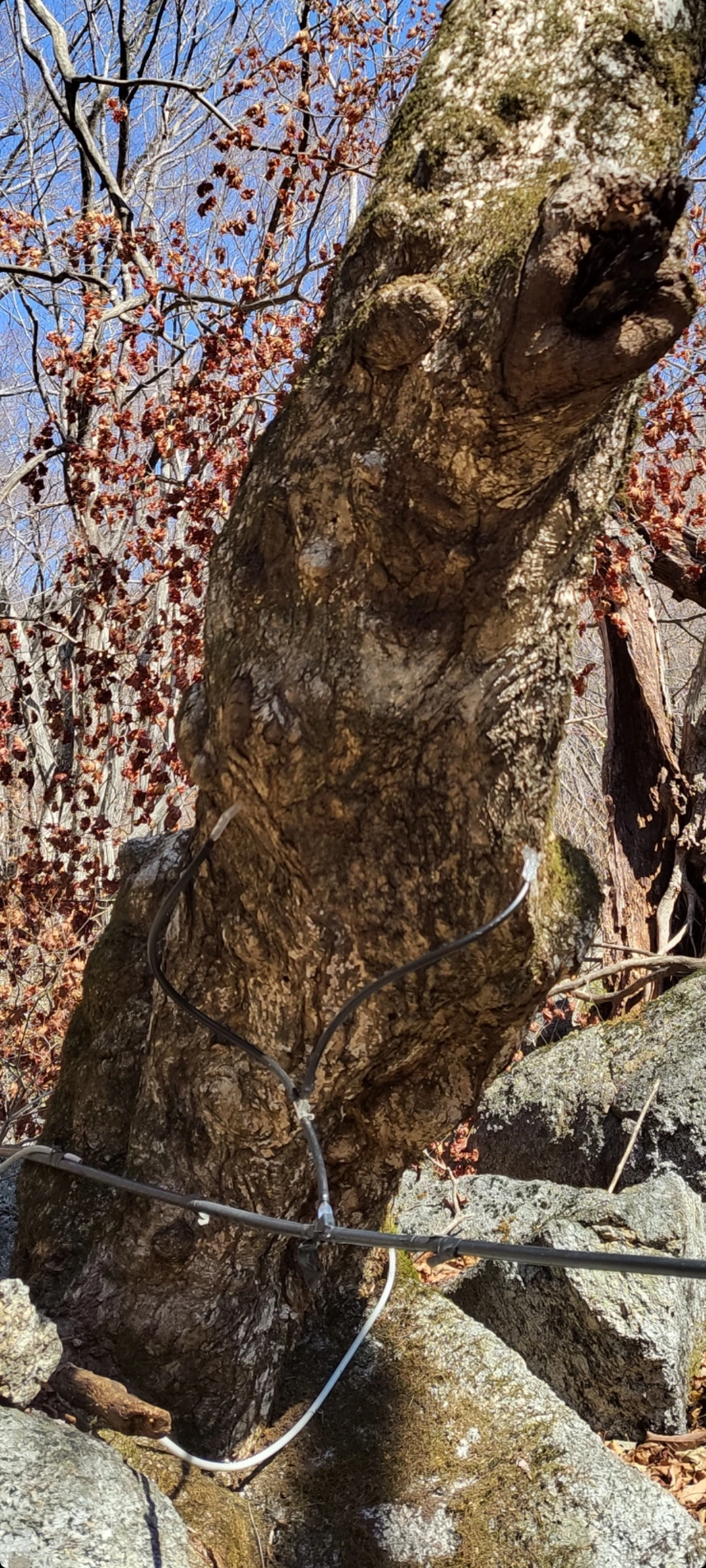 링거 꼽듯 고로쇠 채취 검은 호스들