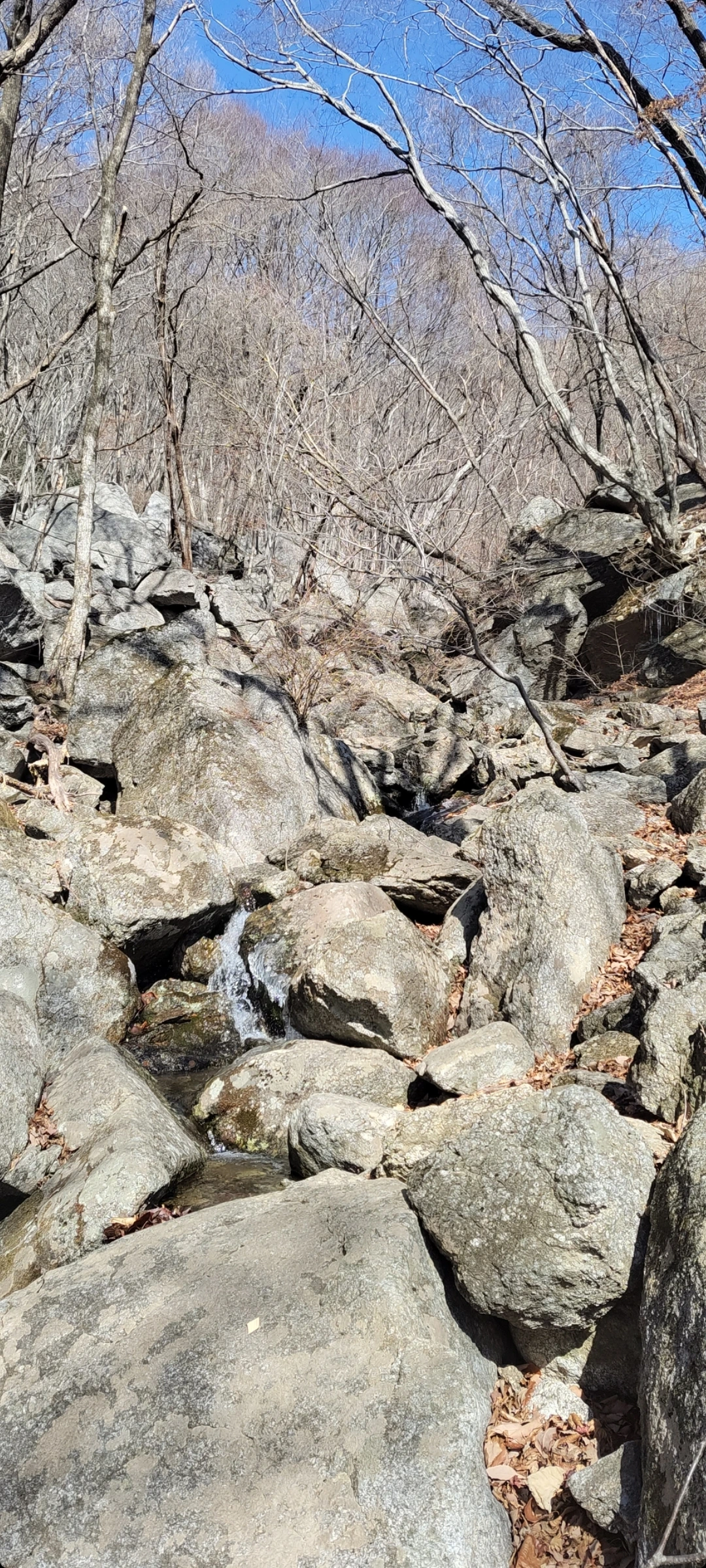 험악한 암릉사이 그대로인 얼음눈