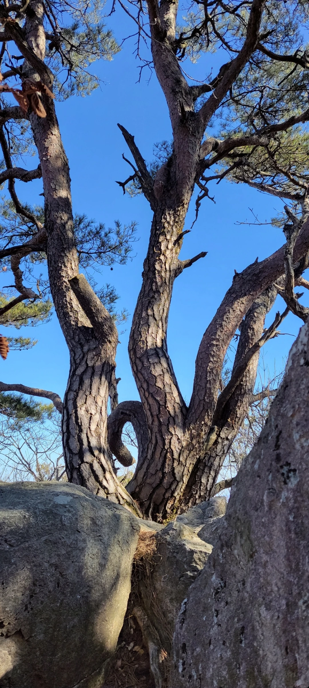 산비탈 자리한 미끈한 나무