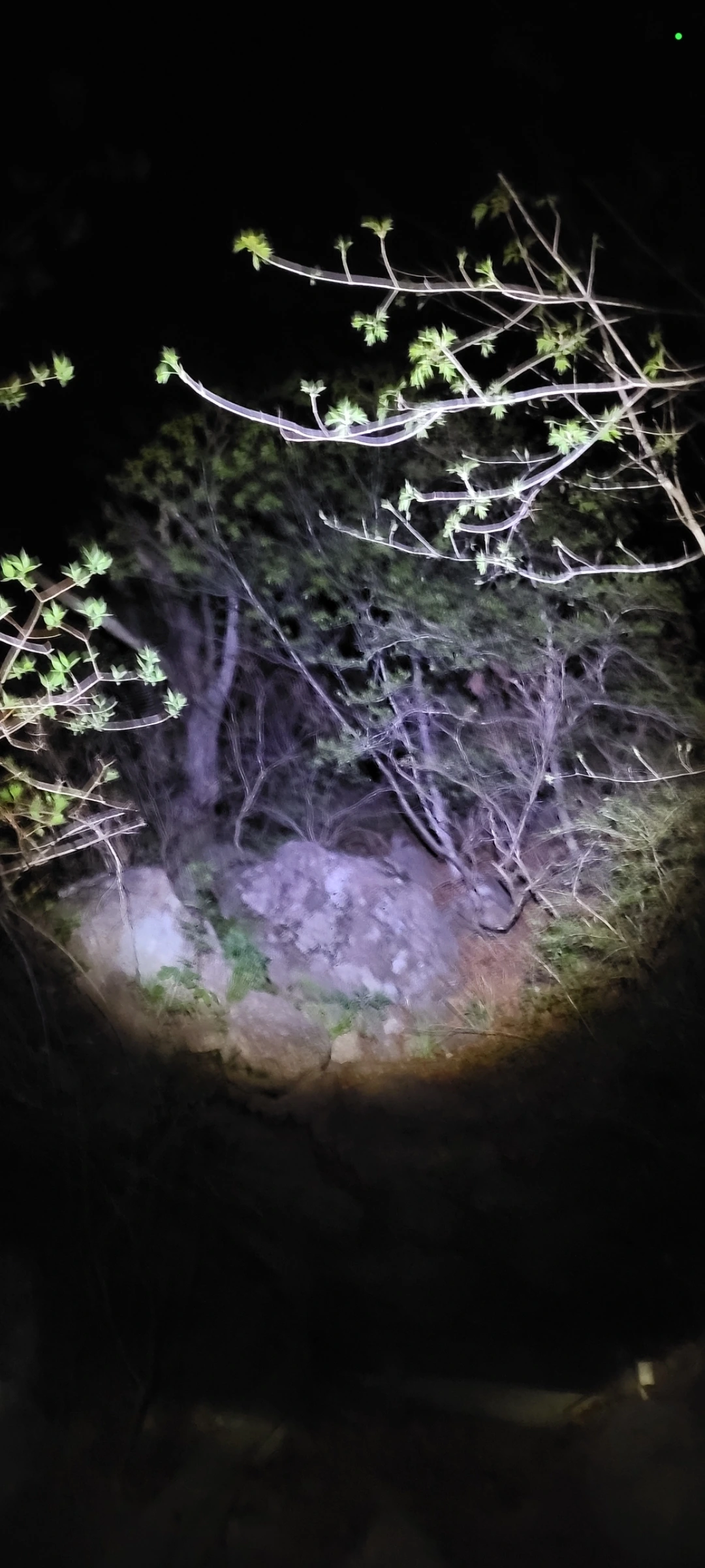 헤드렌턴 키고 장비 챙기며 어수선한 출발 준비합니다.