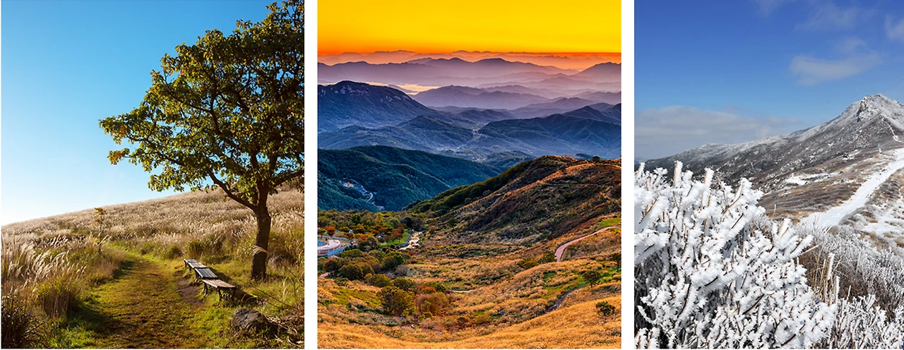 정상 주변 고위평탄면에 펼쳐지는 사계의 모습이 장관인데 특히 봄의 황매산은 지리산 바래봉, 소백산과 함께 '3대 철쭉지'로 이름난 곳입니다.