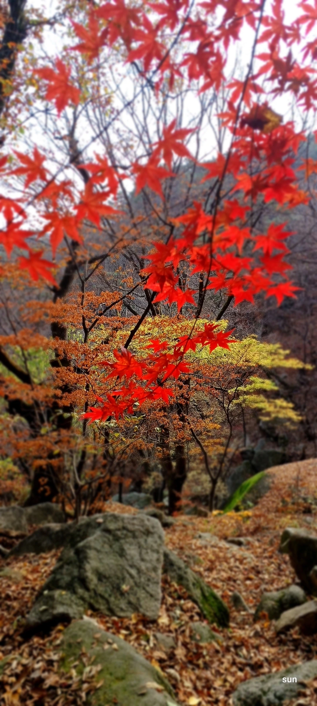 붉은 단풍 갈색 낙엽
