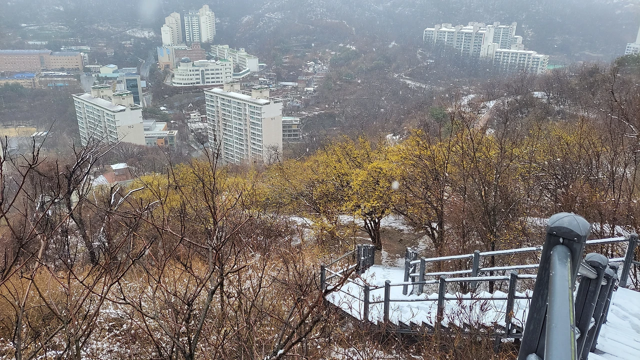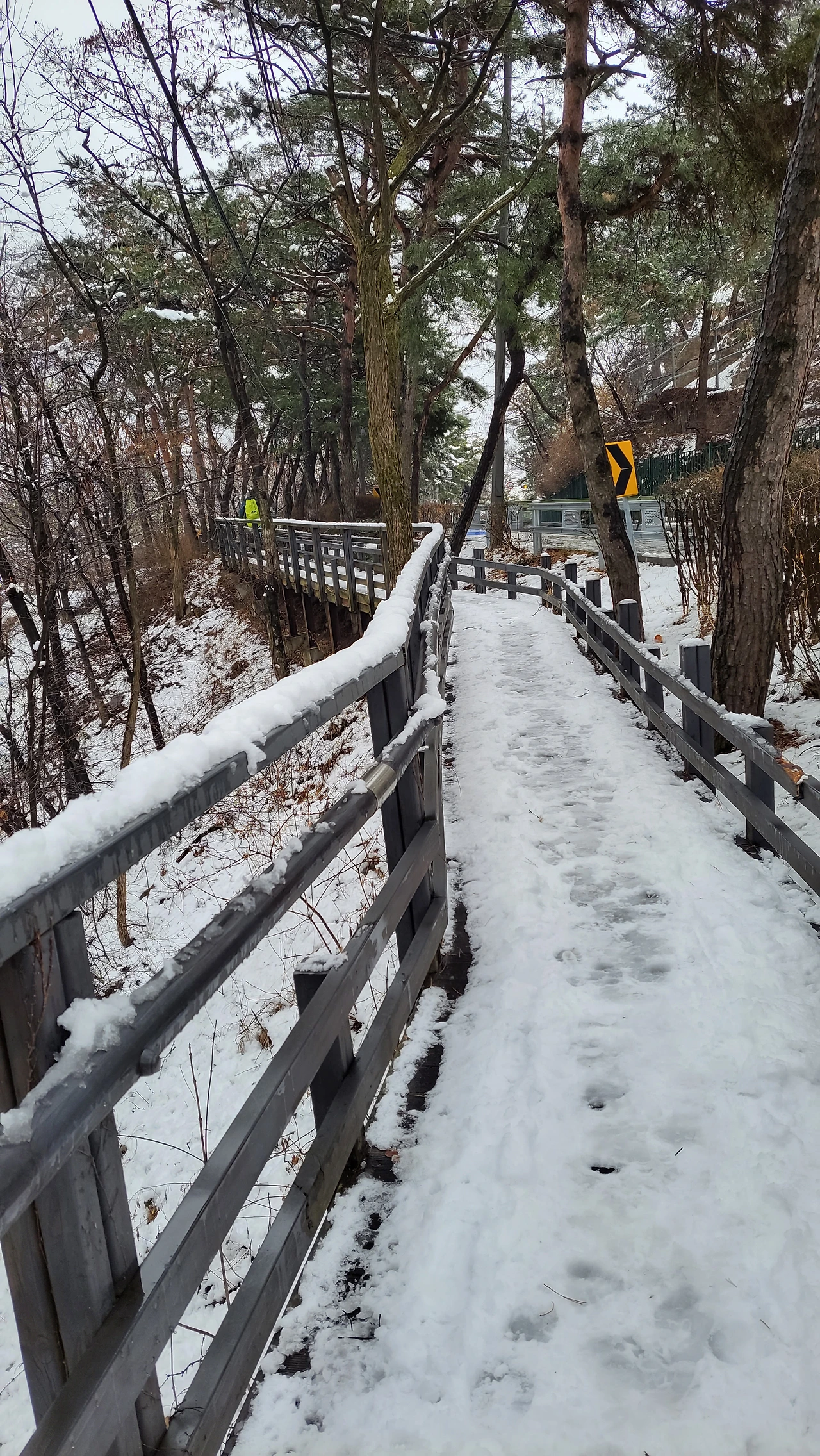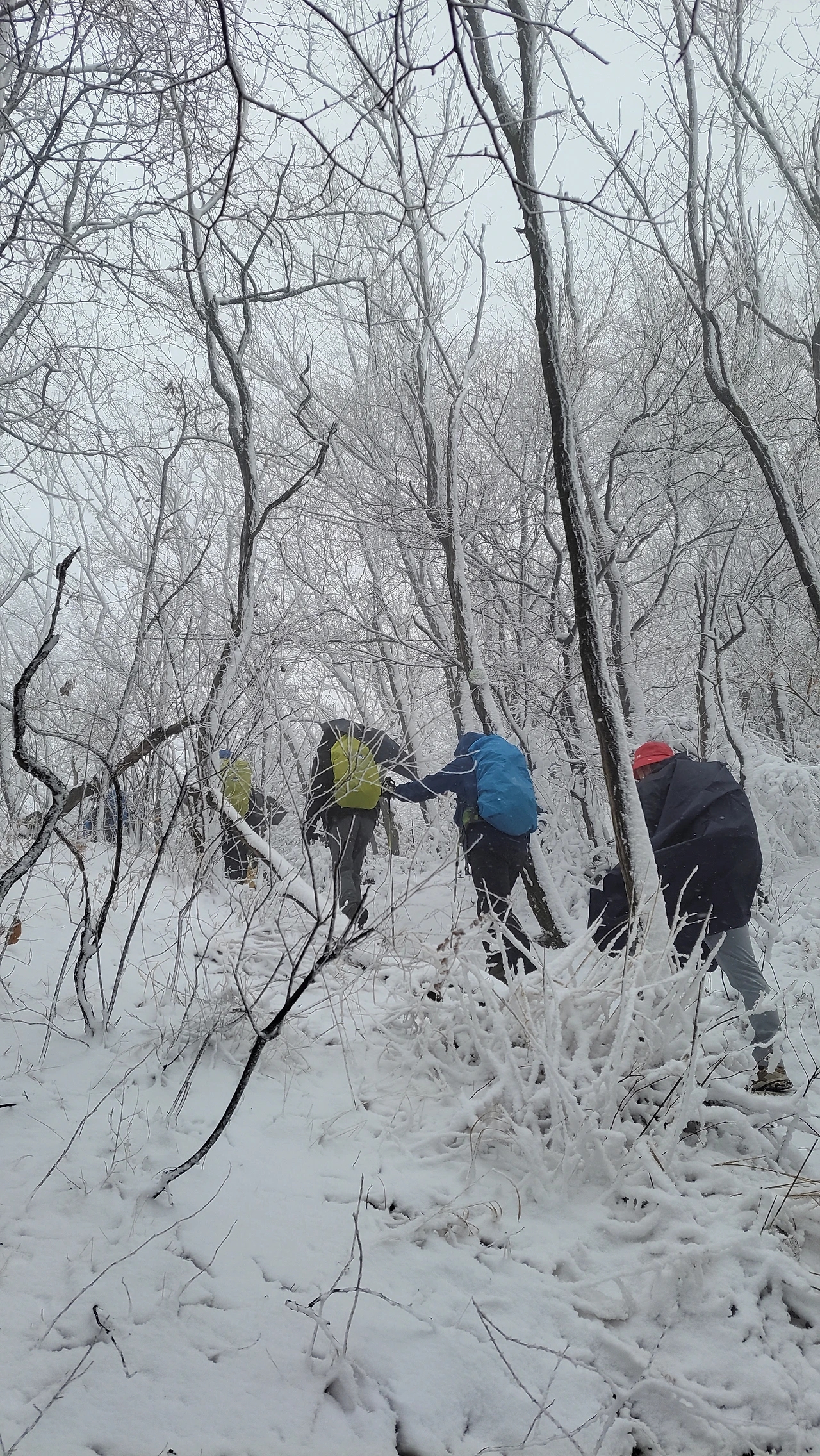 약 11km 5시간 눈 내린 산을 놀며 마시며 걸었습니다.