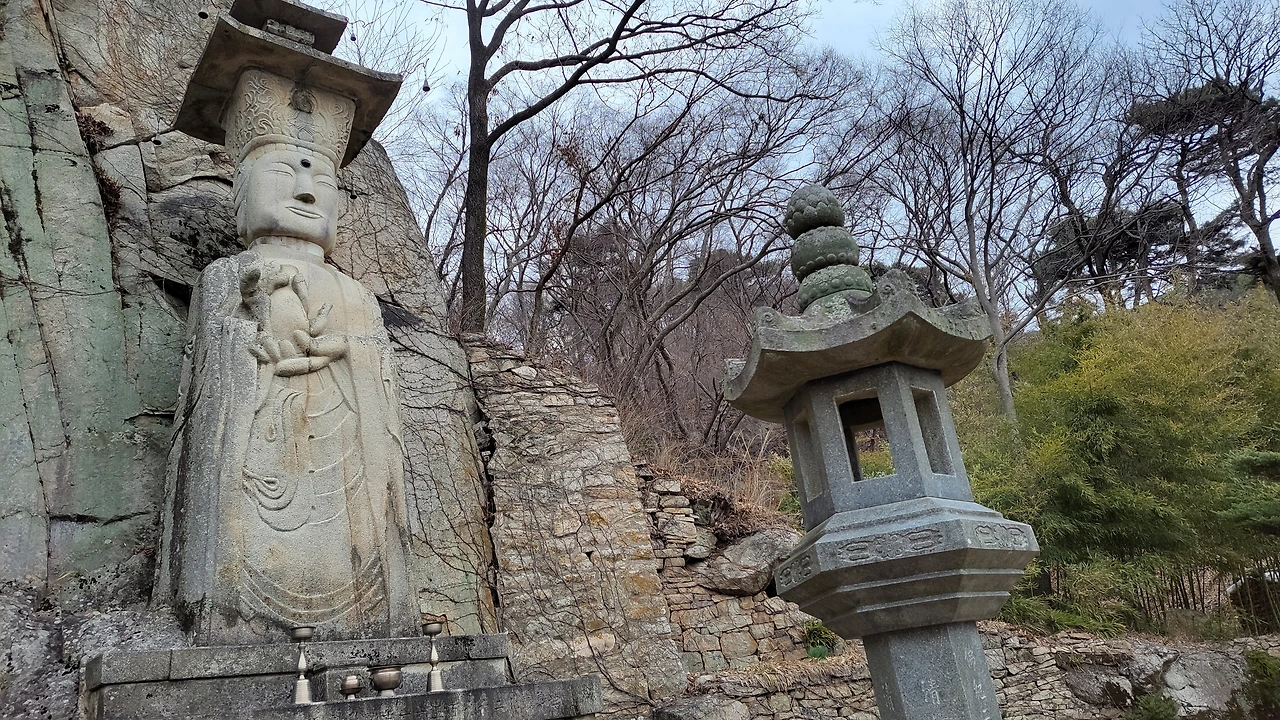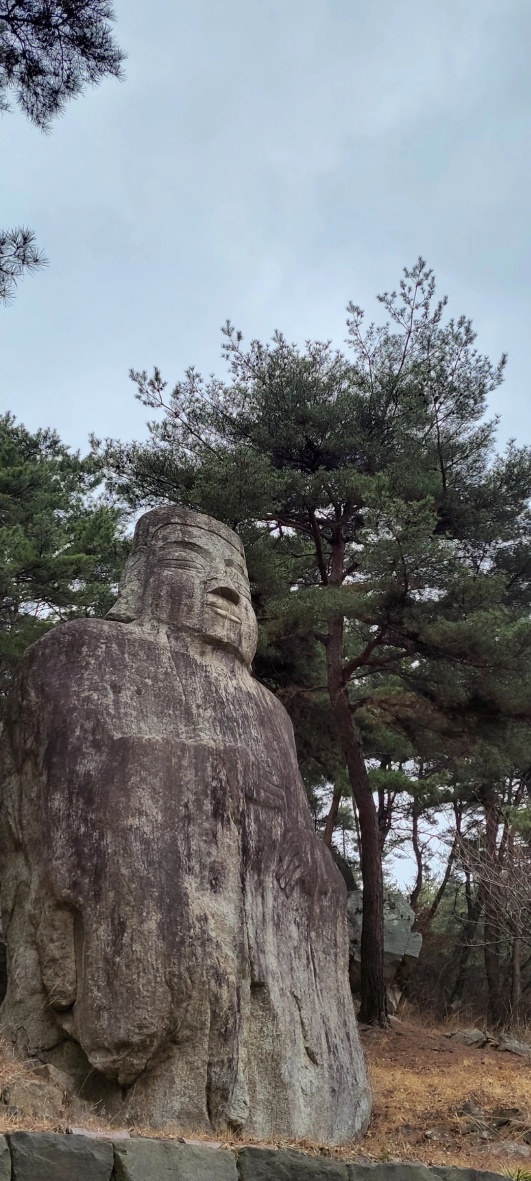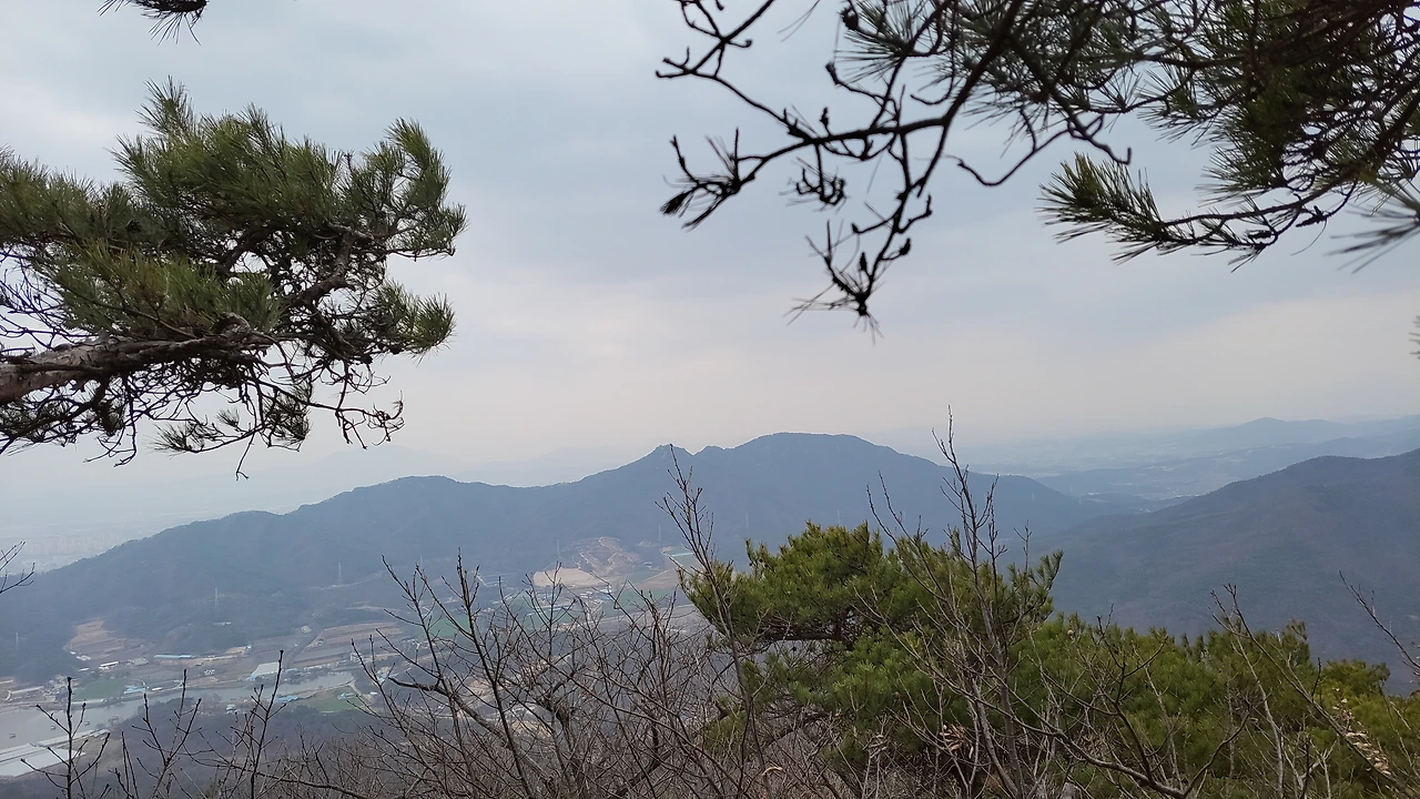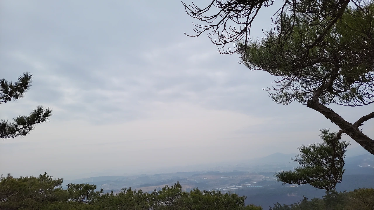 거대 불상과 만물 바위를 잠시 구경하고 흙과 암릉으로 이루어진 완만한 등산로를 오르다 뒤돌아 보니 광활한 평야와 멀리 큰 산들이 몇 개 눈에 들어오더군요.