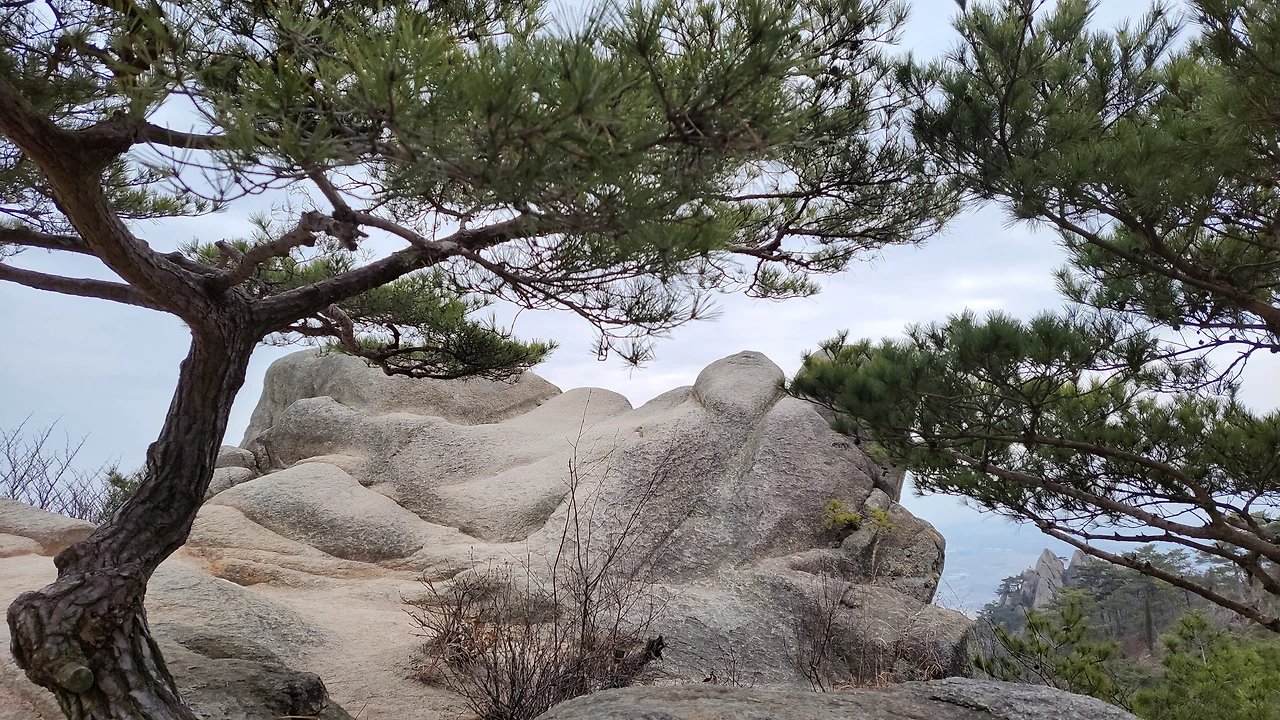 옆으로 자라는 소나무가 신기하게도 바위틈을 삐죽 뚫고 나와 안간힘을 다해 뻗어가고 있는 모습이나 물개와 삽살개, 두꺼비, 아기 코끼리를 닮은 바위들이 연이어 보입니다.