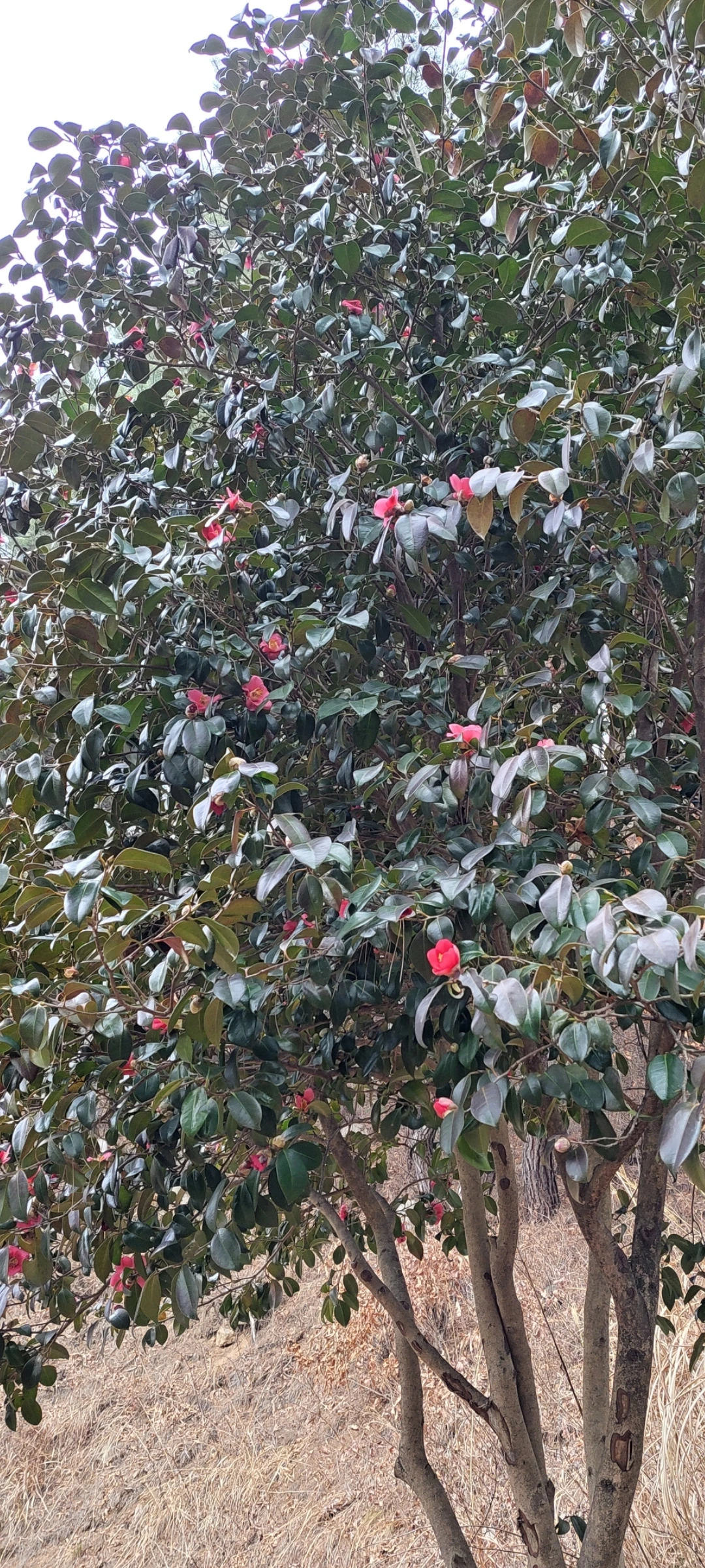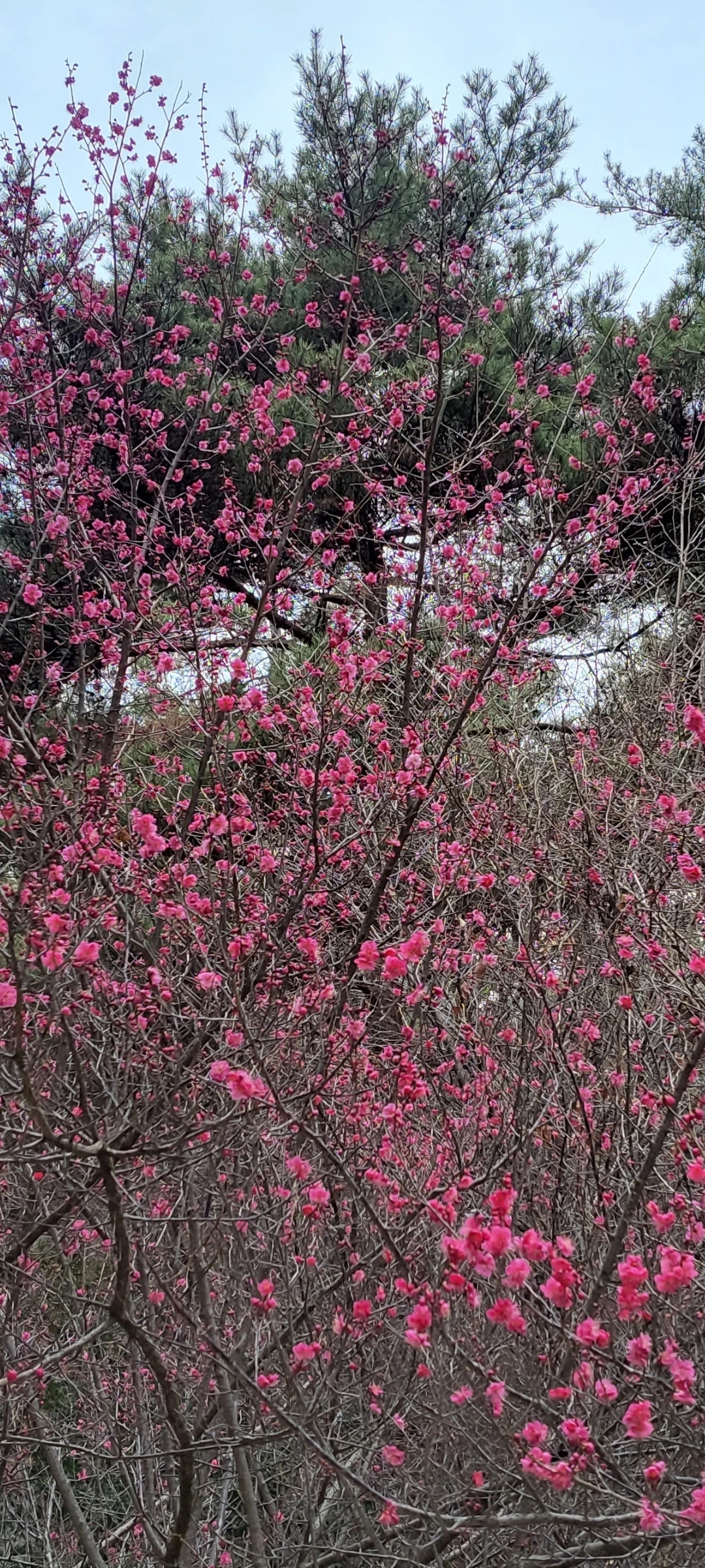 입구에 빨간 홍매화가 만개하고 두어 그루 동백도 꽃을 피워내고 있습니다.