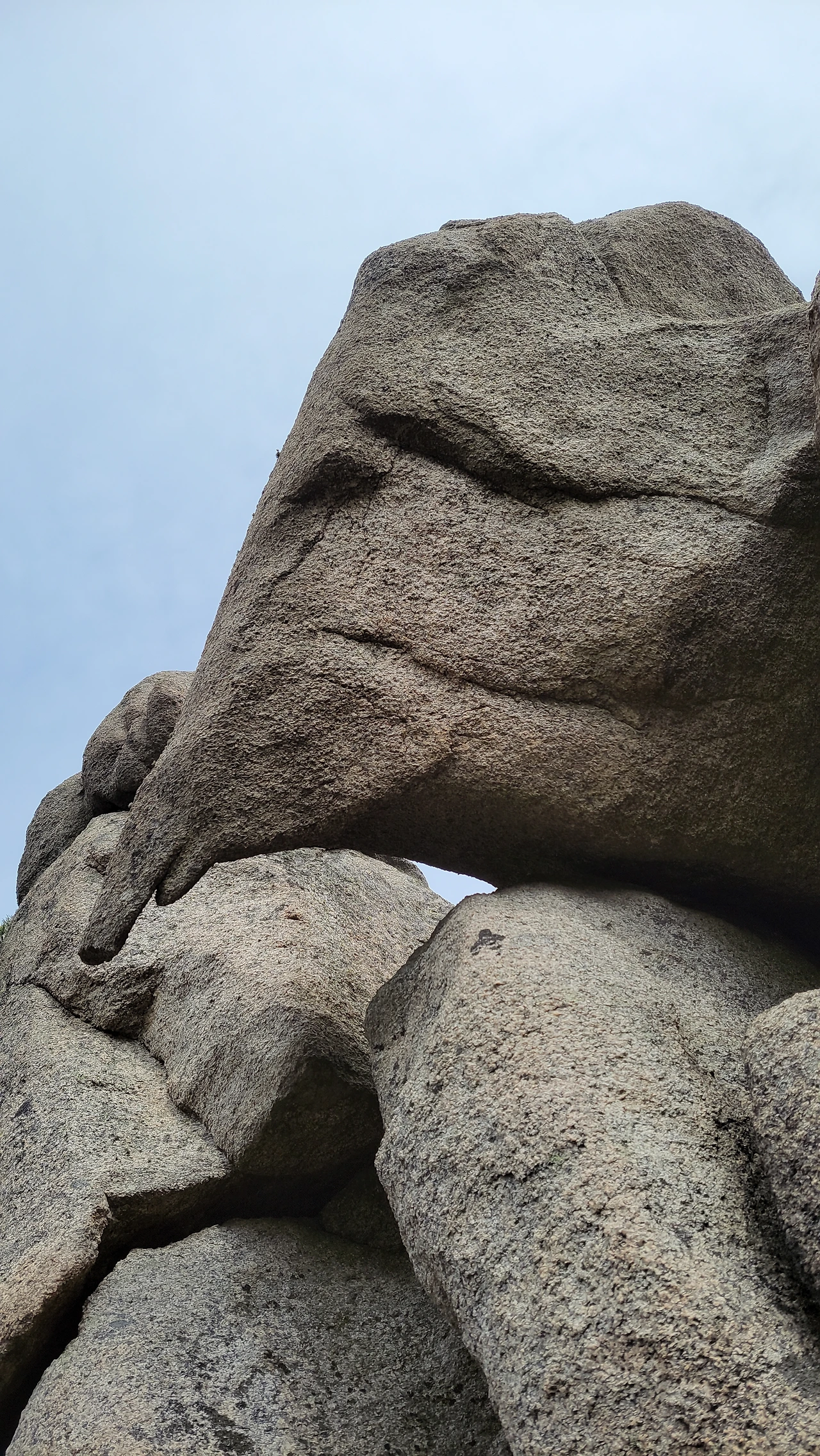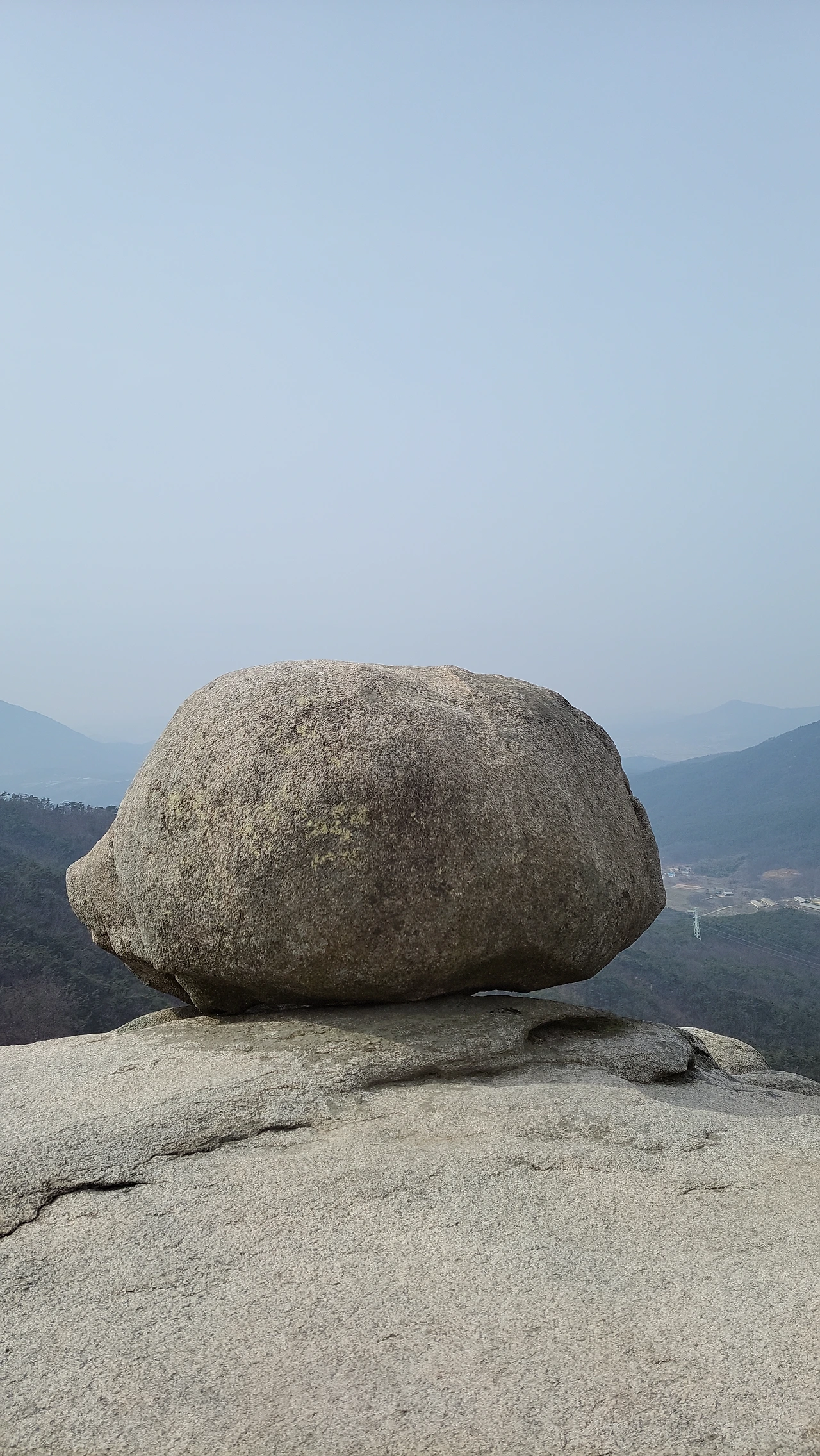 떨어질 듯 절벽 위에 앉아 있는 둥그런 흔들바위며