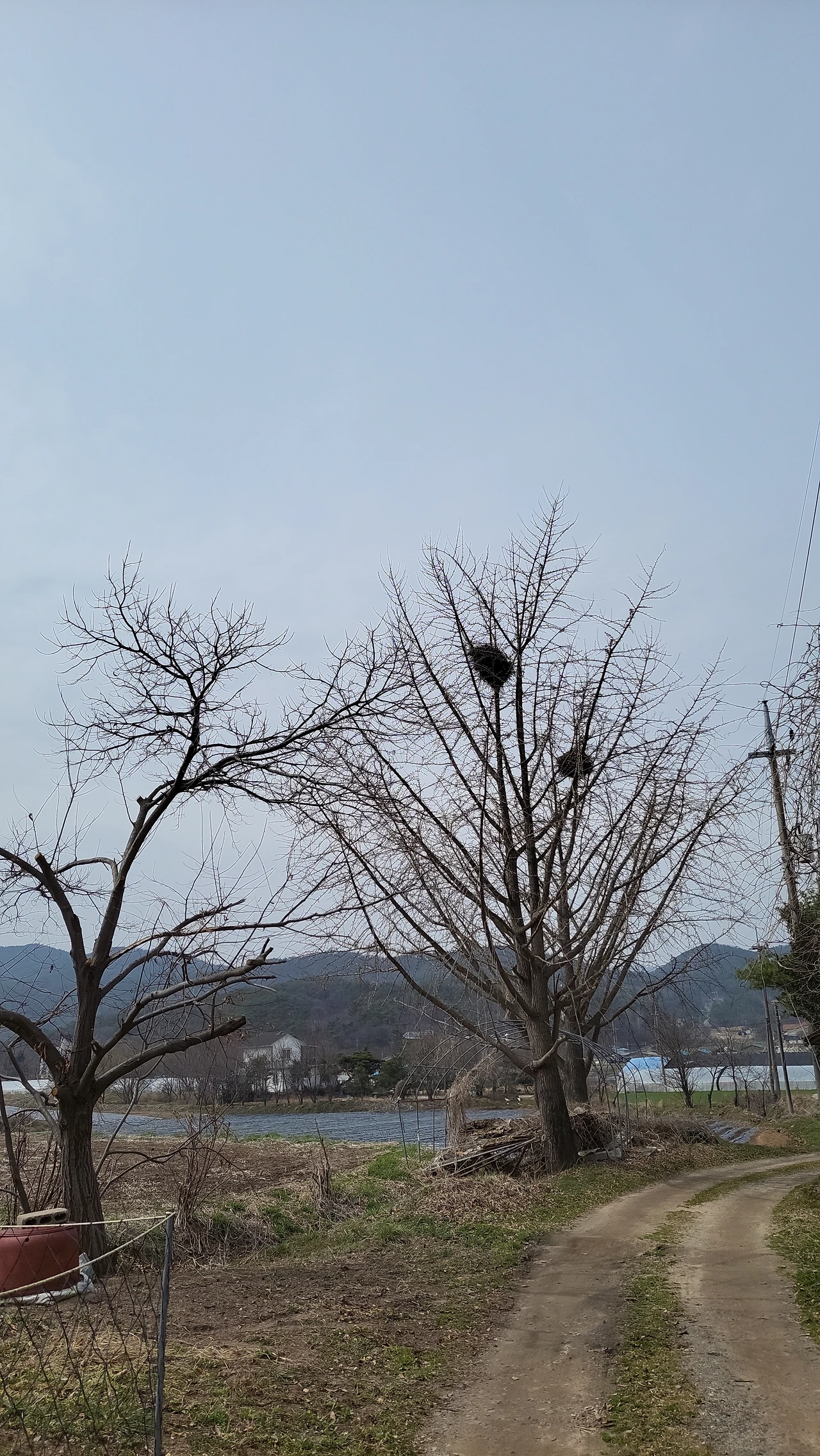 여기서 좌틀하여 봄이 무르익는 벌판과 과수원이 이어진 '가루실 고개'를 따라 내려갑니다.