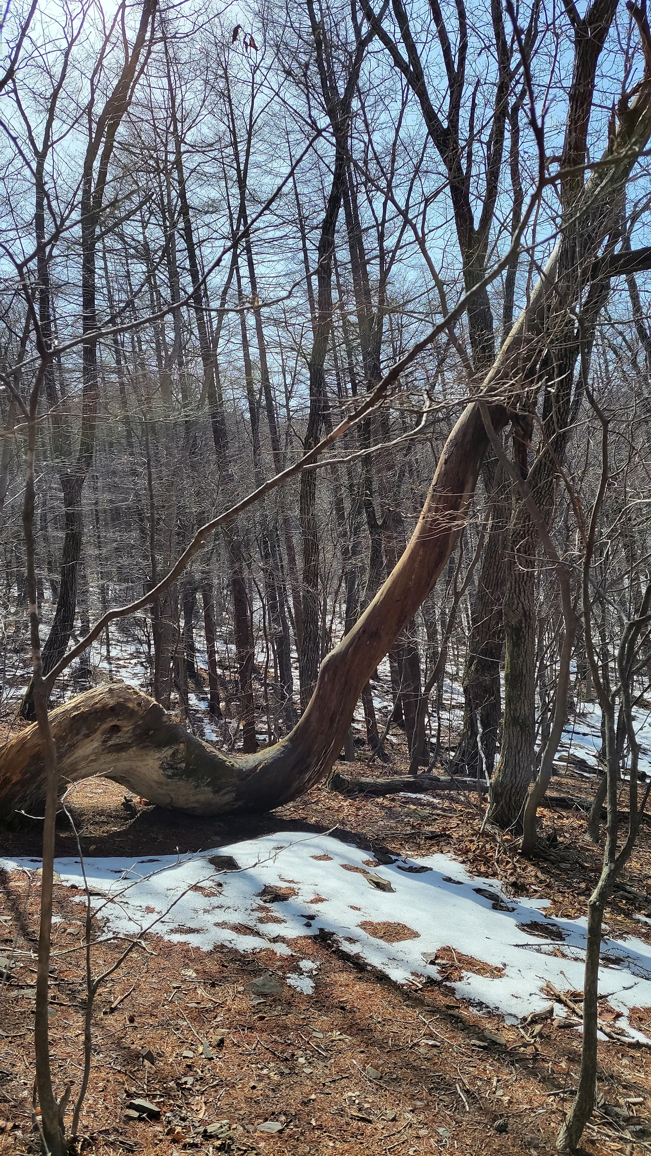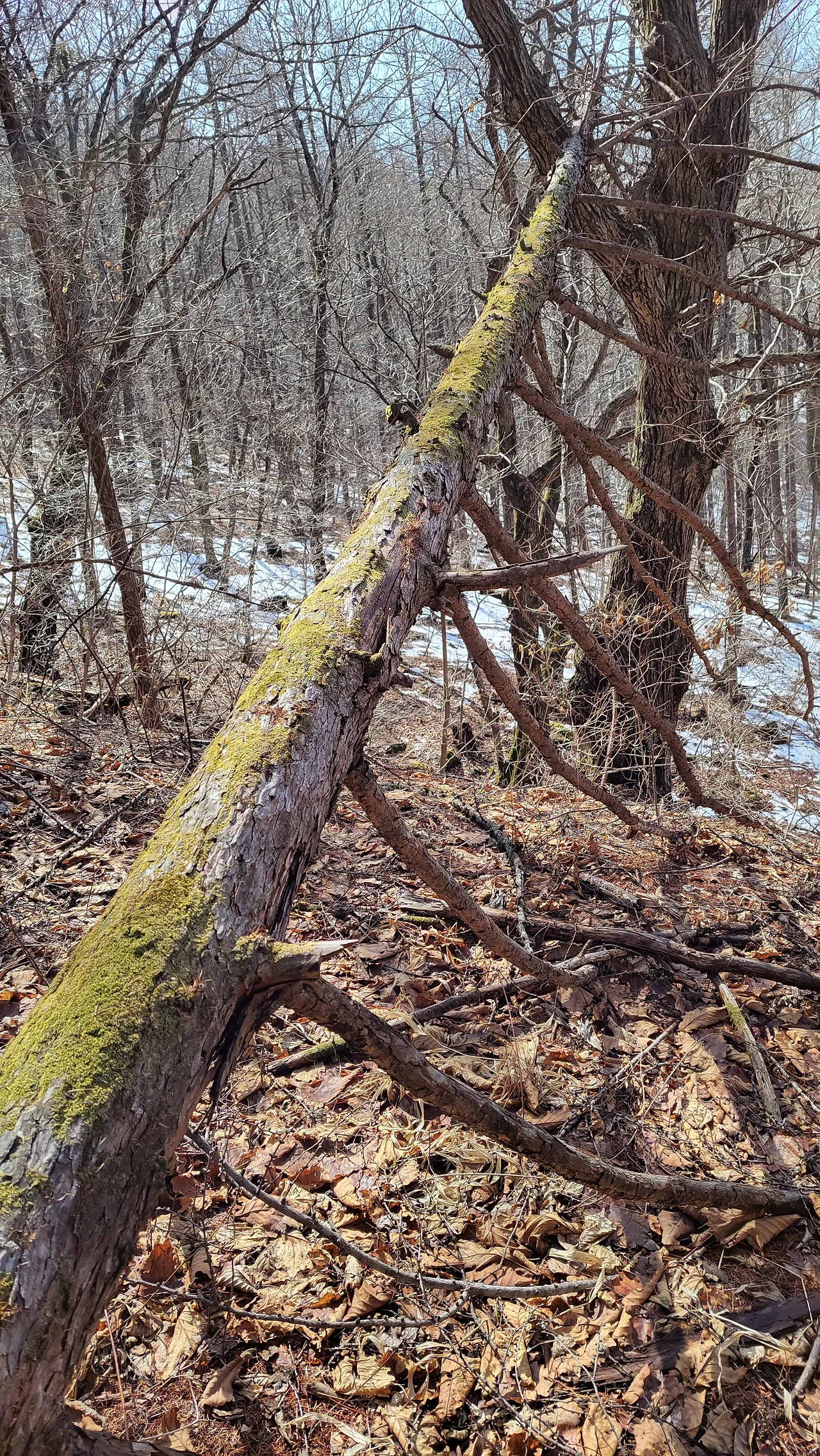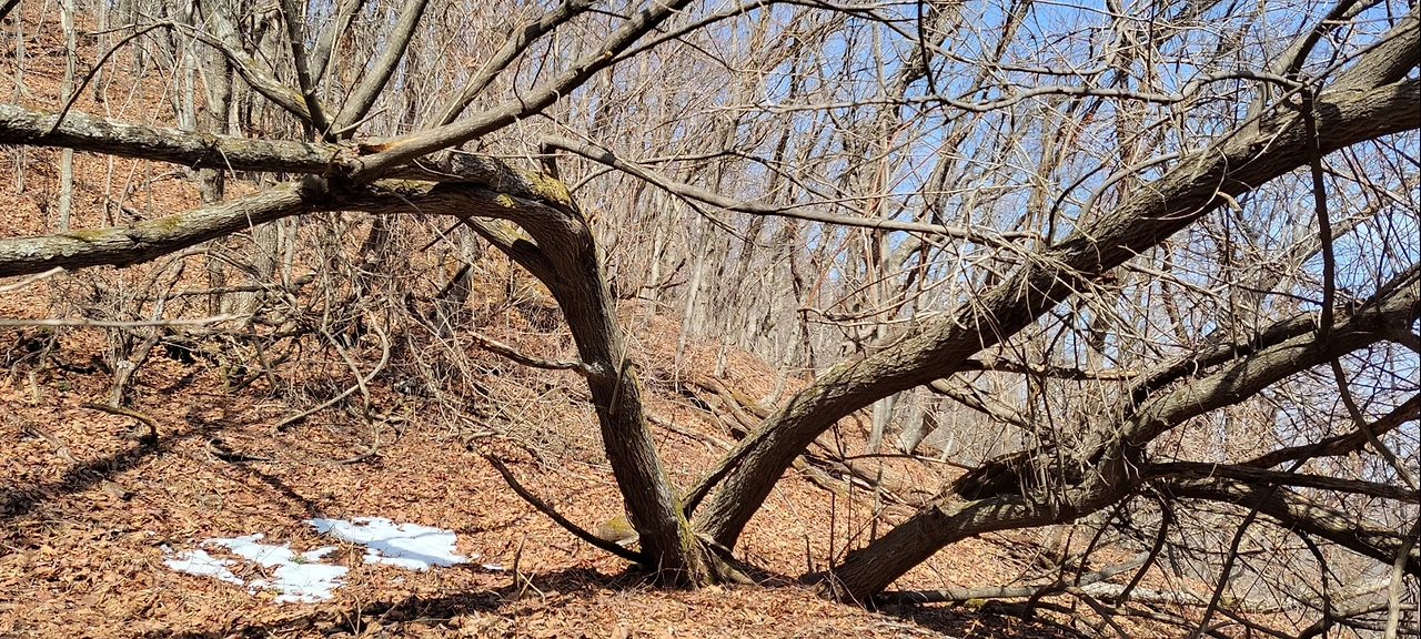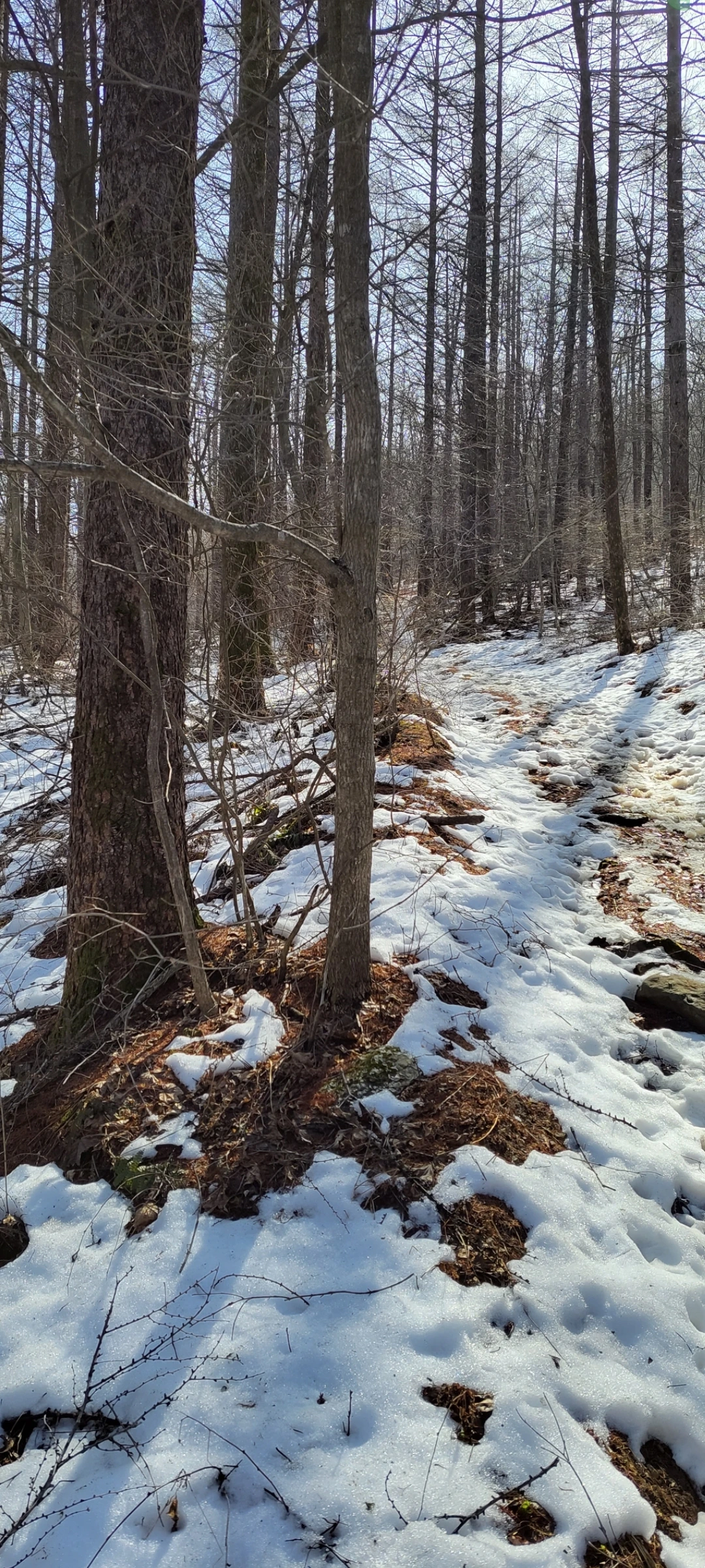 아랫녁과 북사면 음지는 눈이 한창이지만, 위로 오를수록 따듯한 햇살 덕분에 오히려 뽀송뽀송한 낙엽 길이 이어졌습니다.