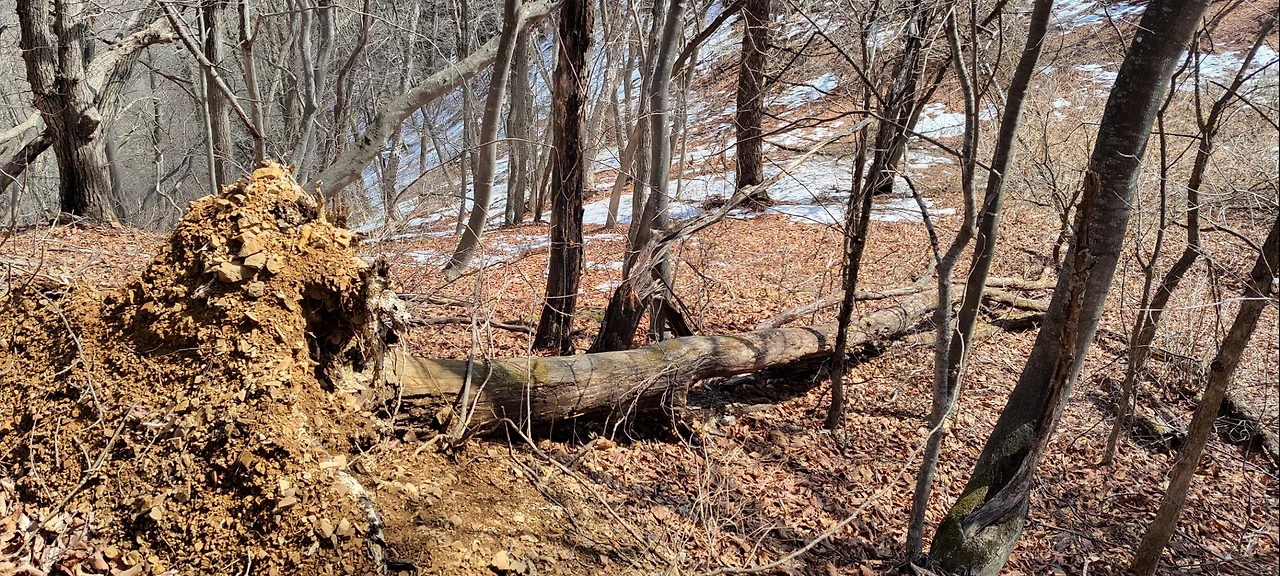 솔내음 그윽한 산길 사이로 며칠 전 강풍에 뿌리째 뽑혀 쓰러진 나무들 모습이 측은합니다.