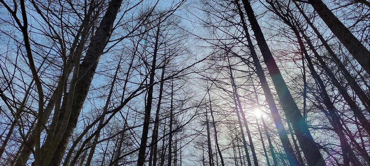 언덕에 곧게 솟은 낙엽송 사이로 맑고 푸른 하늘이 그림처럼 빛나더군요.