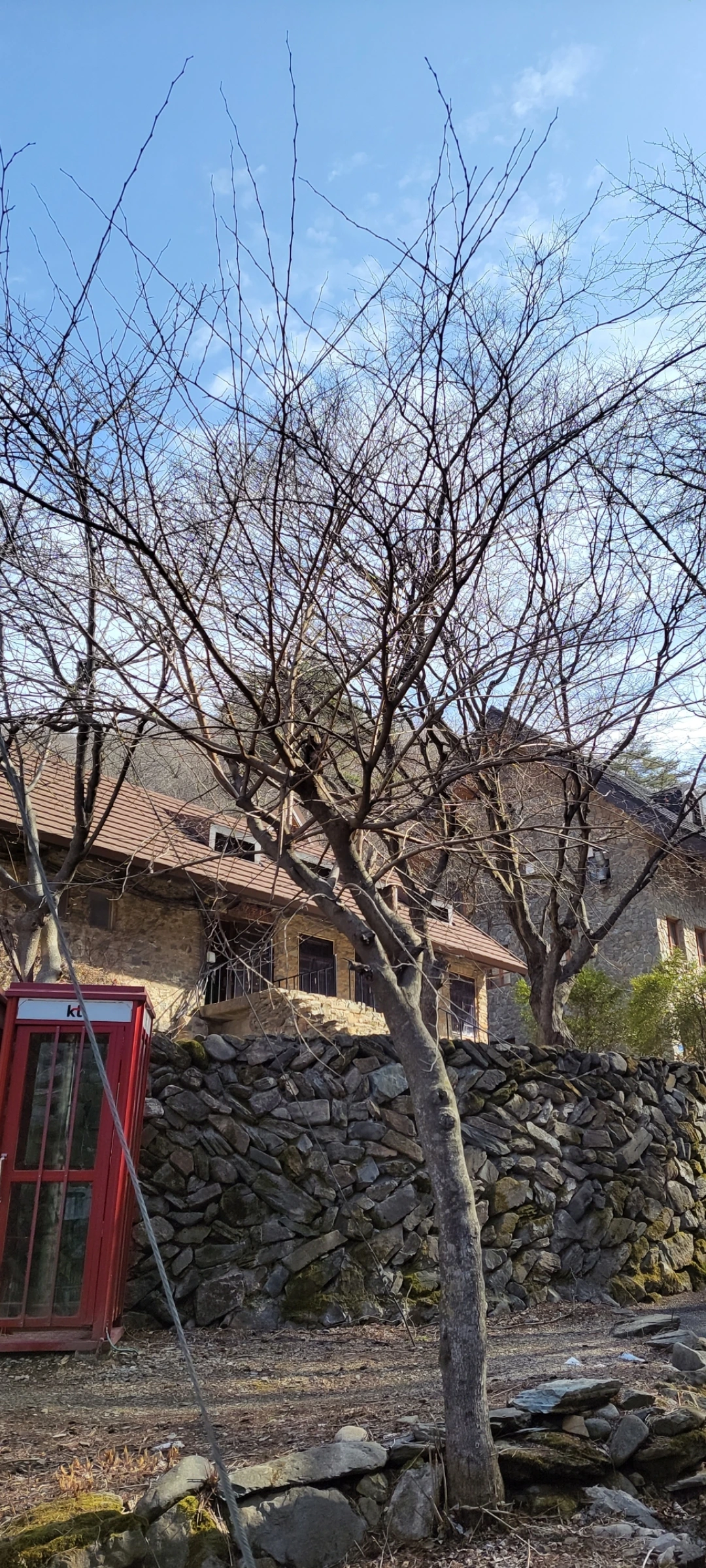 요즘은 시내에서도 흔치 않은 돌담 옆의 빨간 공중전화 박스가 누군가의 사연을 기다리는 듯했습니다.