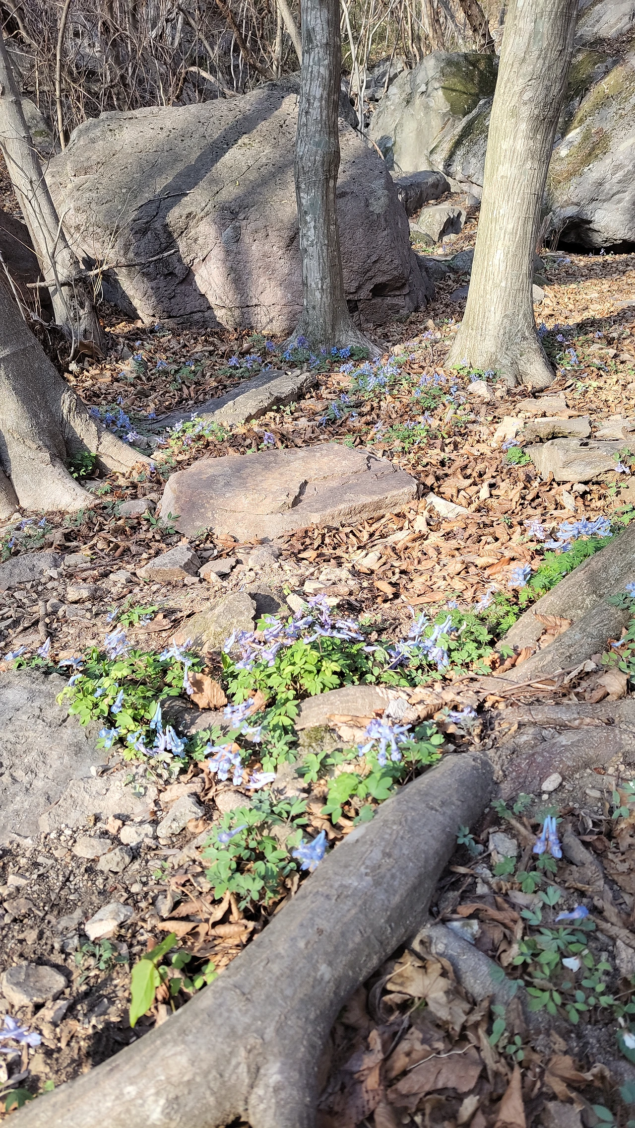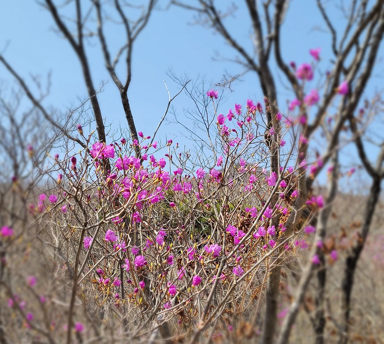 산비탈 여기저기 가녀린 노랑제비꽃들이 앙증맞게 바람에 날리고 철쭉군락에 철쭉은 아직 피지 않았지만, 군데군데 진달래와 생강나무 꽃들이 반겨주었습니다.