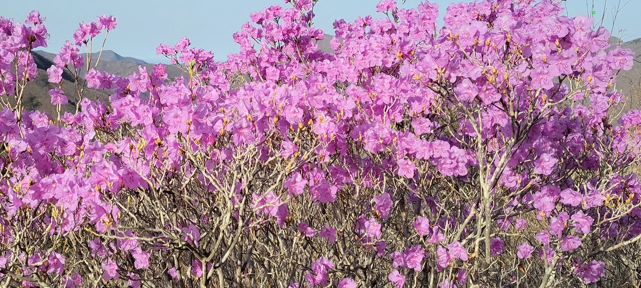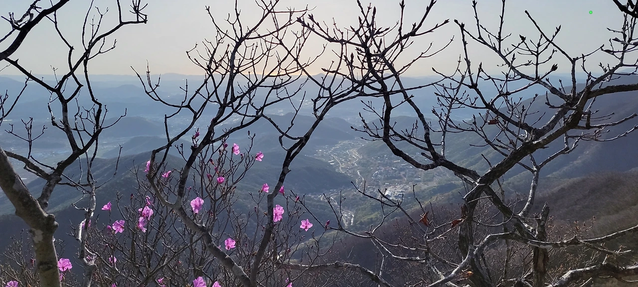 절벽에 외로이 피어있는 진달래와 평화로이 산아래 누워있는 마을들, 푸근하게 이어지는 새벽 능선길이 간월산 향하는 발길을 상쾌하게 해 주었습니다.
