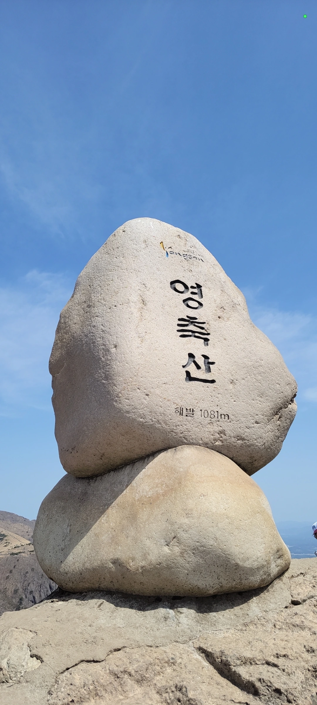 30분 정도 오르니 시야가 트이며 햇살에 반짝이는 산맥들이 아득하게 주름지어 펼쳐져나가고 곧이어 소원석들이 쌓여있는 넓은 공터인 배내봉,
