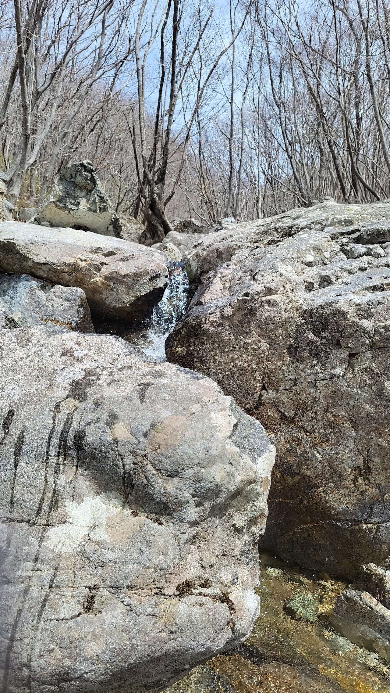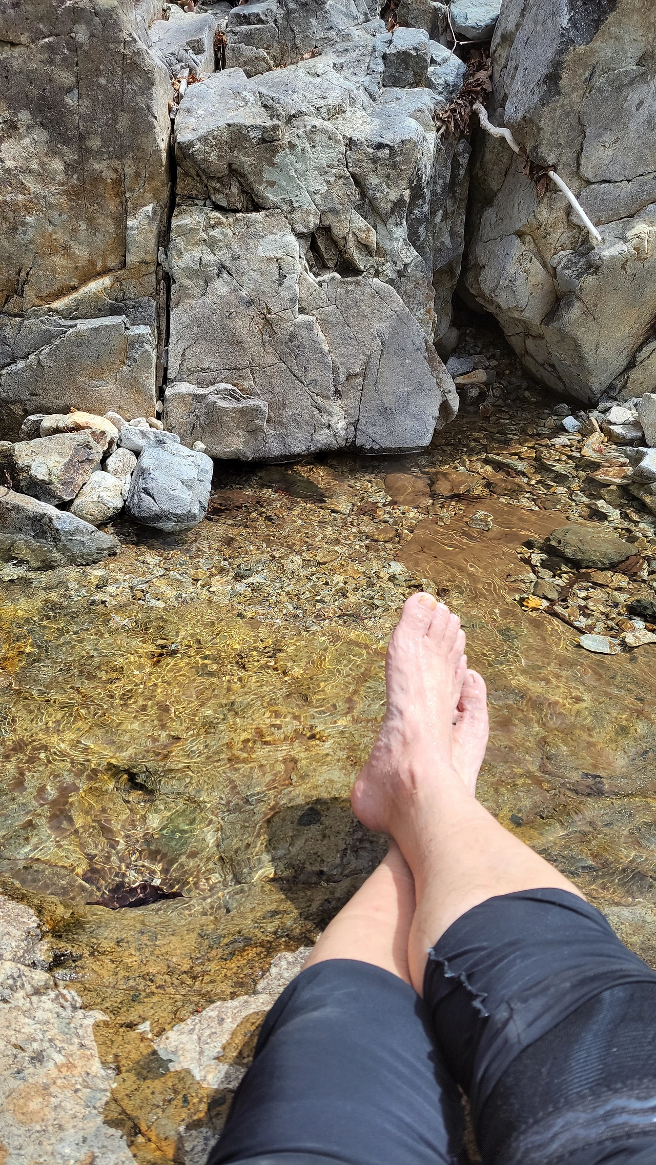 중간에 따듯한 햇살 쪼이며 계곡에 앉아 발까지 담그는 호사를 누리고 한참을 내려와 날머리에 닿습니다.