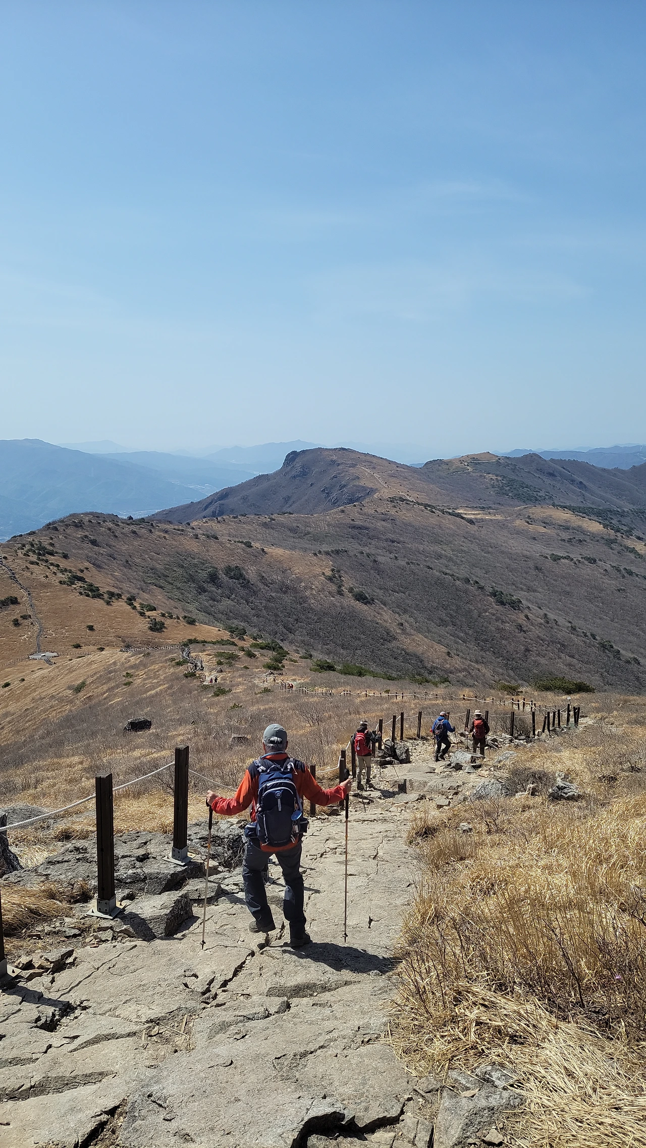 억새밭, 돌밭을 지나 경치에 취해 한참을 오르니