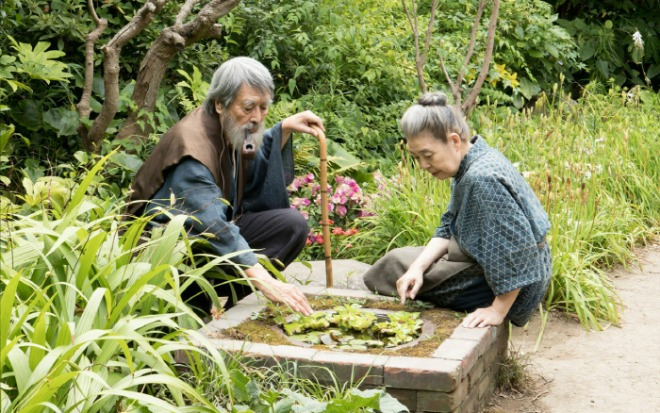 옥상에서 내려다보기 이전까지 모리의 정원은 드넓은 미로처럼 다가온다. 영화 초반에 정원을 관찰하며 모험을 떠나는 모리의 여정을 통해 정원이 그렇게 보이도록 연출된 것 같기도 하다. 하지만 막상 옥상에서 바라본 정원은 생각만큼 거대하지 않다. 정원은 모리에게, 그리고 아내 히데코에게만큼은 넓은 공간이다. 우주보다 넓은 하나의 세계다.