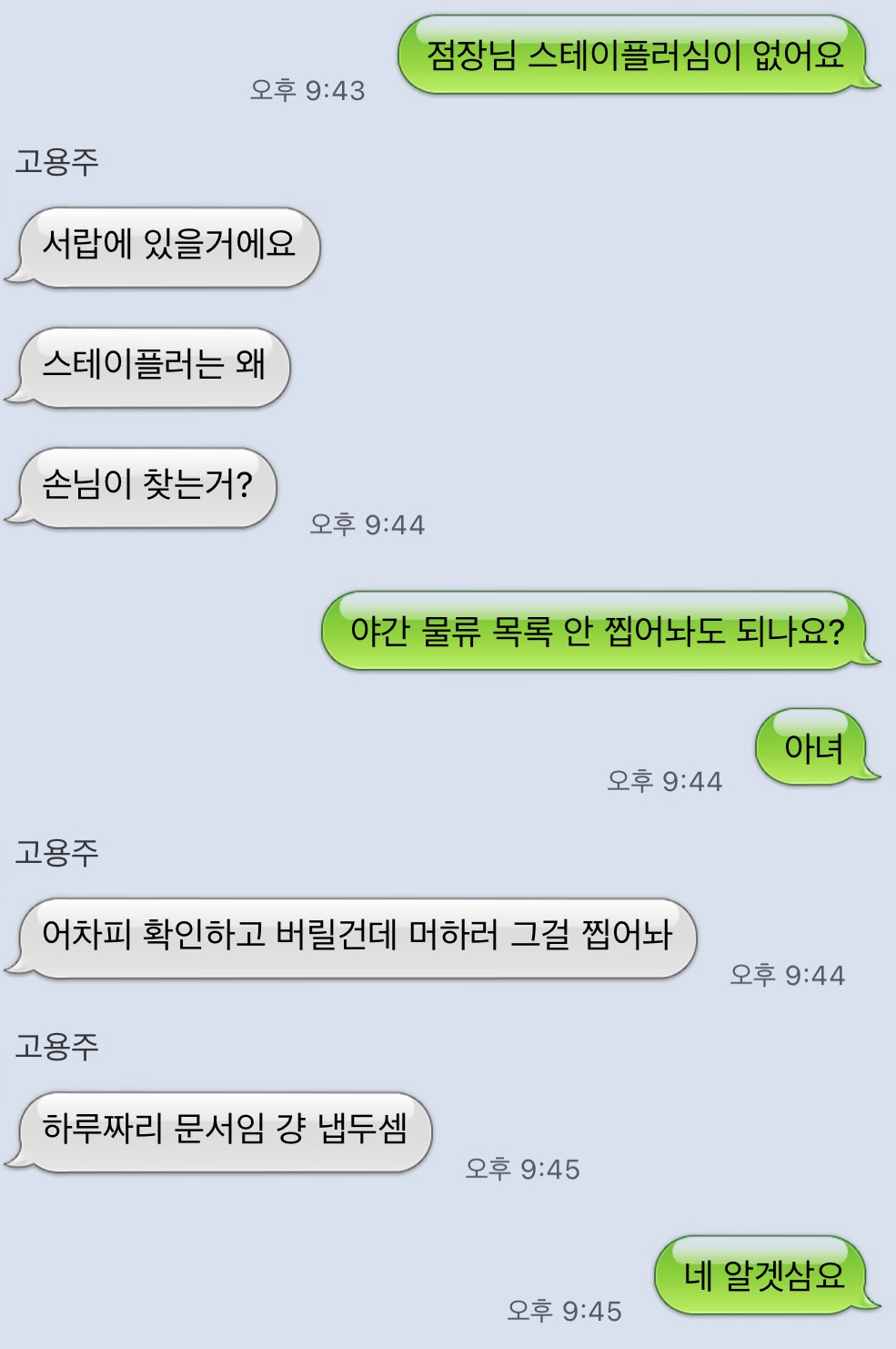 그럼 마지막으로 오늘 점장님과 나눈 톡 내용을 공개하겠습니다. 어떤 상관관계가 있는 걸까요