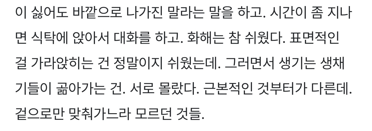 나는 대충 이런 글을 좋아한다. 쉽게 쓰이진 않았으나 쉽게 읽혀서 가슴에서 얹혀 버리는 문장들.