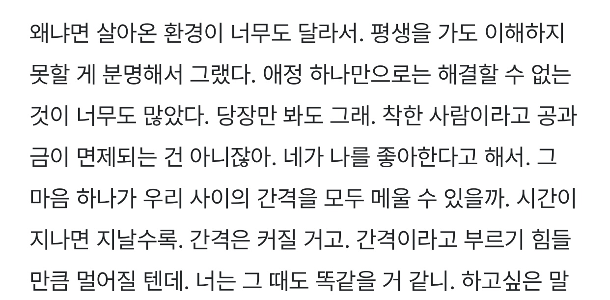 그냥. 지금은 사라졌지만, 그런 글을 쓰던 사람이 있었다.(1번 글쓴 사람) 나는 그 사람을 사랑했다. 진심으로. 그런데 그 사람이 남기고 떠난 게 별로 없어서, 그거라도 붙들고 달달 외울 지경으로 읽어대는 중이다.