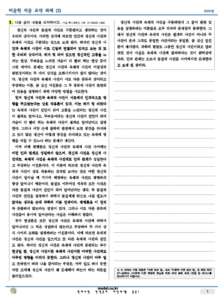정 어려우면 ‘마르고 닳도록’이라는 홈페이지에 들아가, 비문학 요약하기 연습이라도 해 보길 권하는 바이다. 그걸로 기본기를 갈고닦아 일상생활에 적용하면 되니 말이다. (진짜 광고 아님 전 수능 국어를 마닳로만 공부했습니다...이찬희쌤 짱)